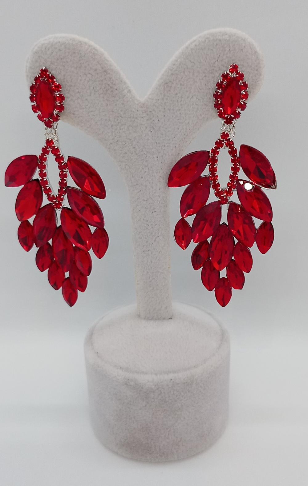 Kırmızı Kristallerden Oluşan Uzun Taşlı Gelin Küpesi