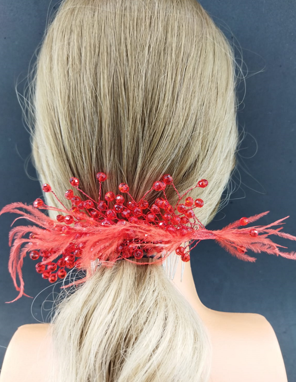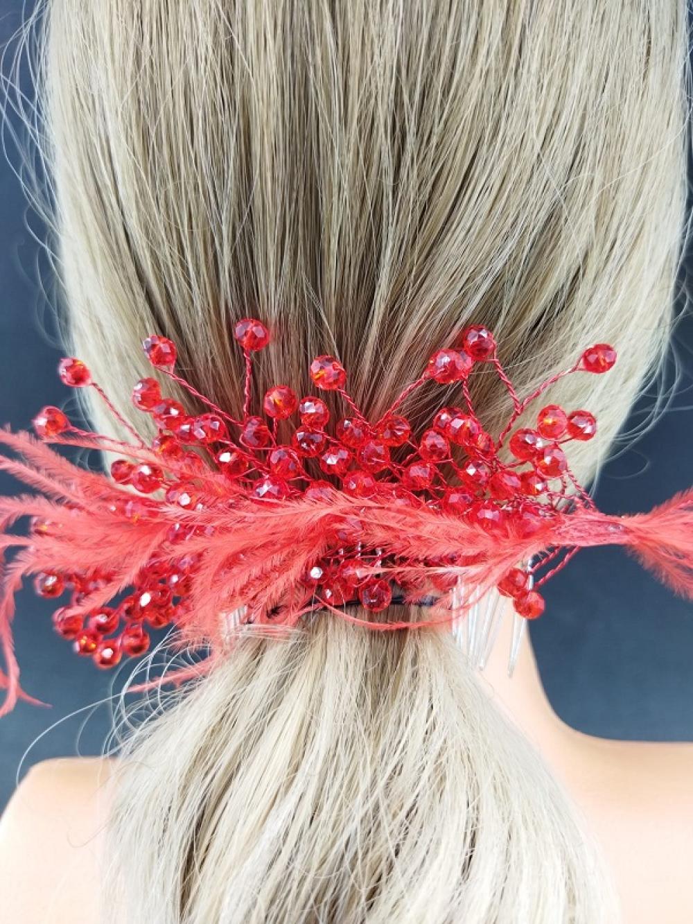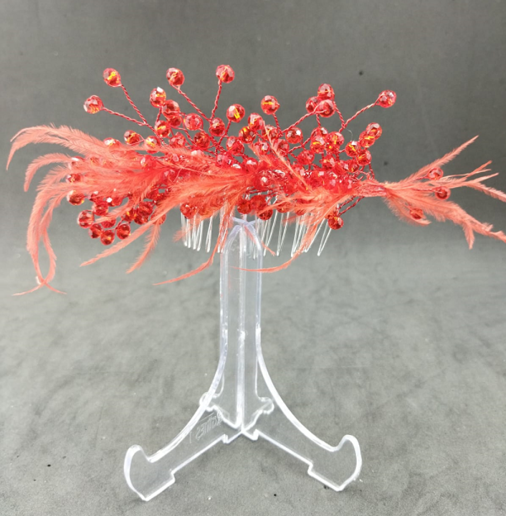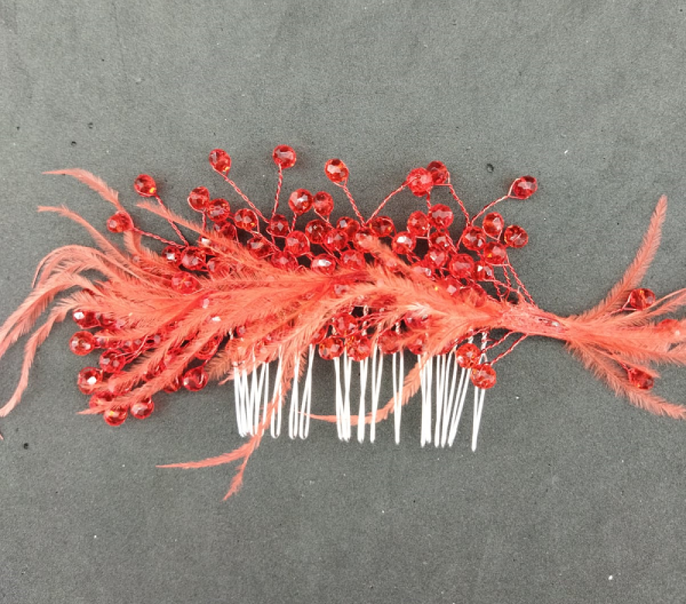 Kırmızı Kristallere Ve Tüllere Sahip Kına Tokası