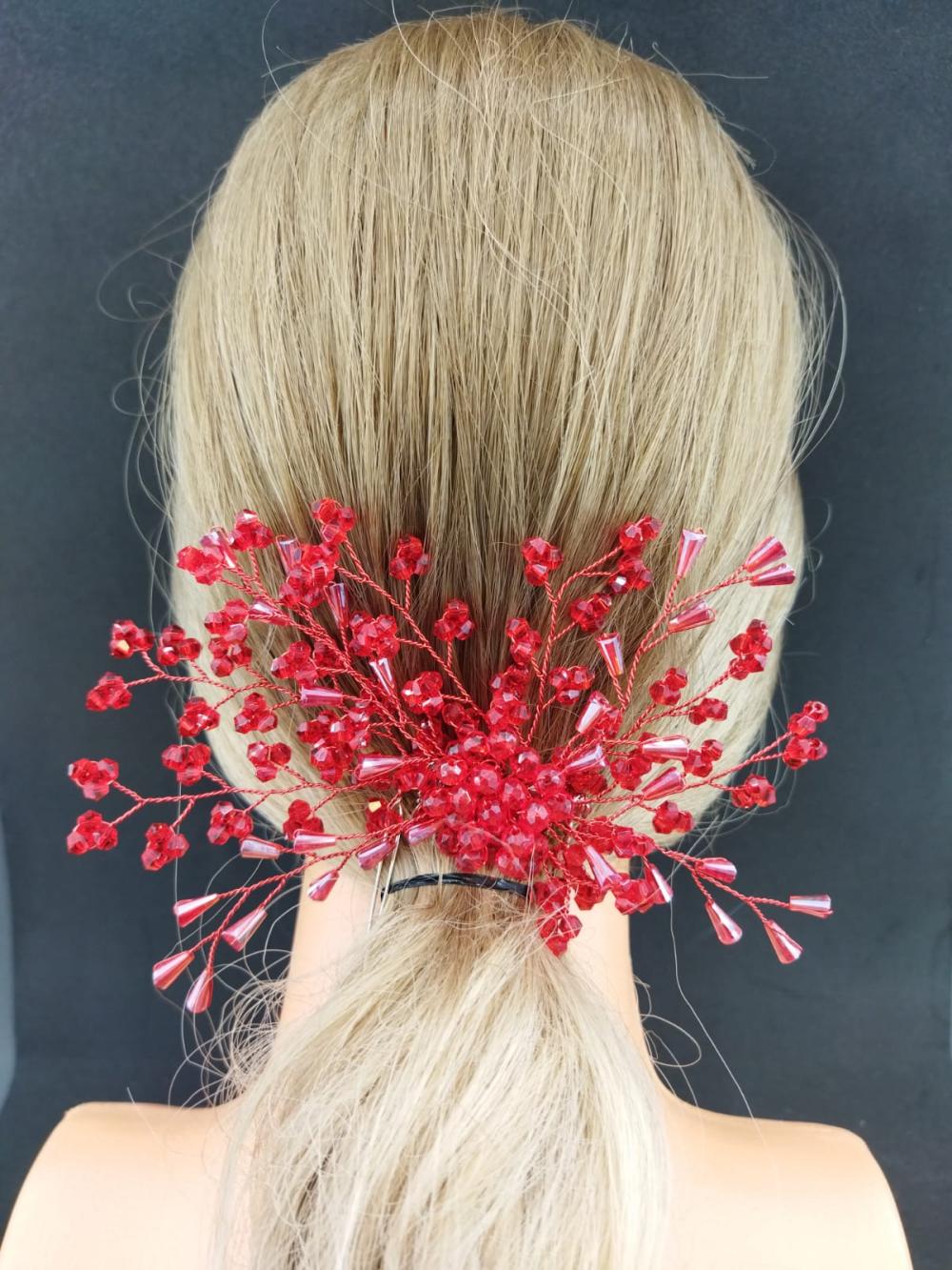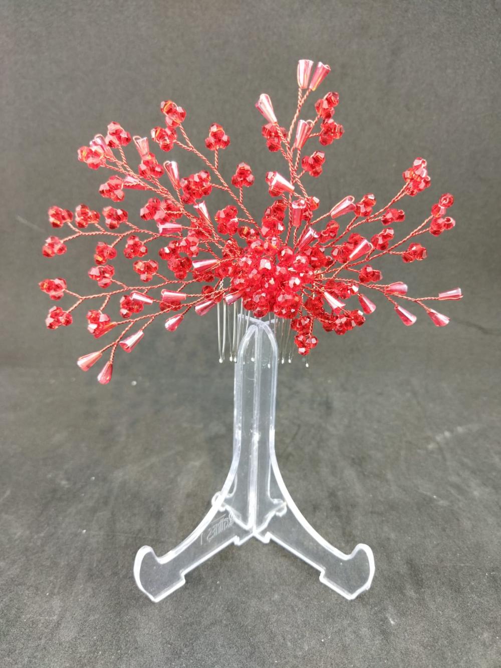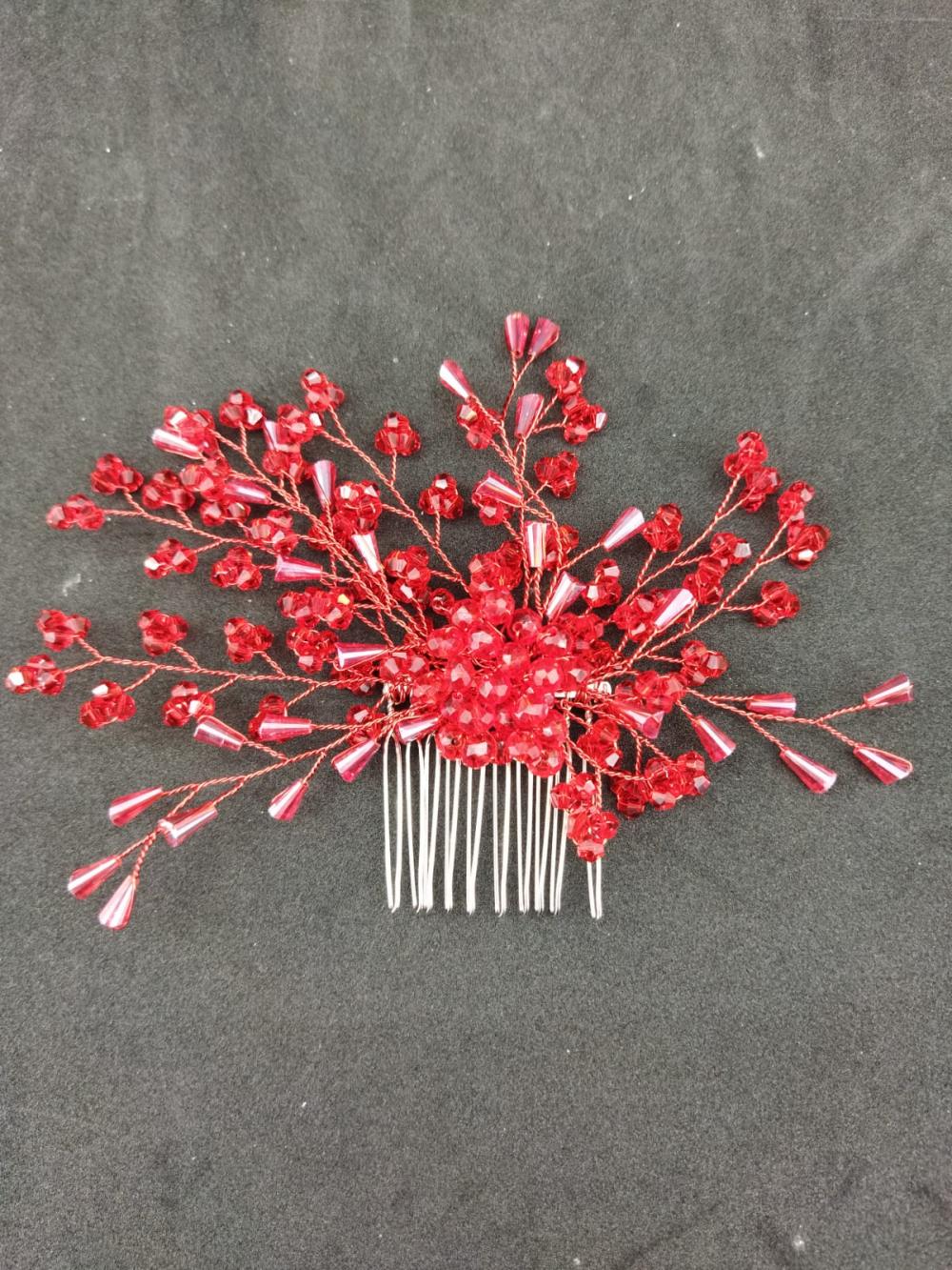 Kırmızı Kristallerle Şekillendirilmiş Gelin Tokası