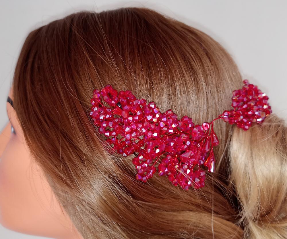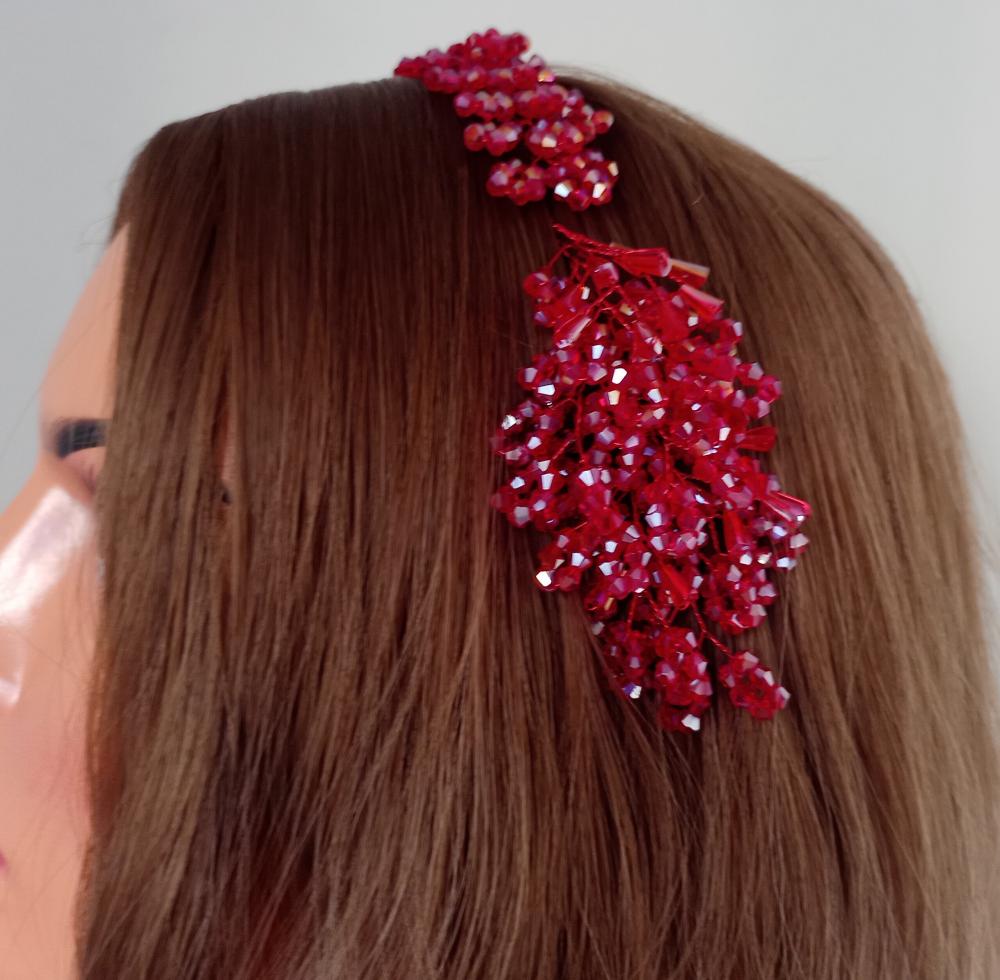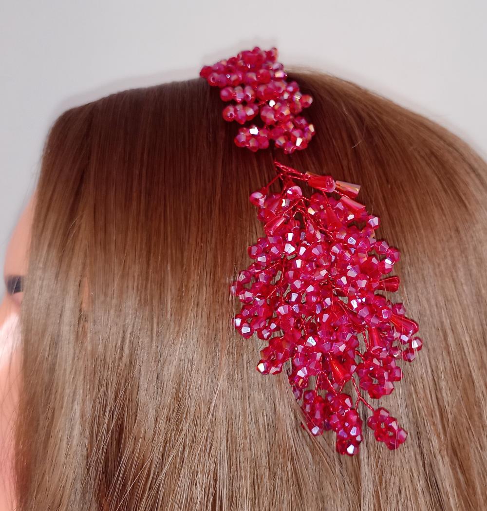 Kırmızı Kristallerle Şekillendirilmiş Zarif Kına Tacı