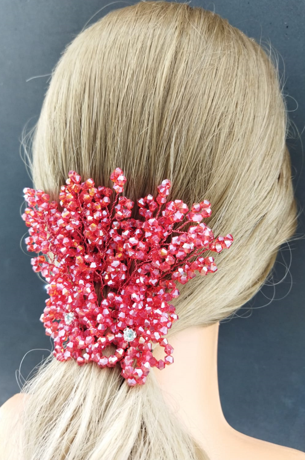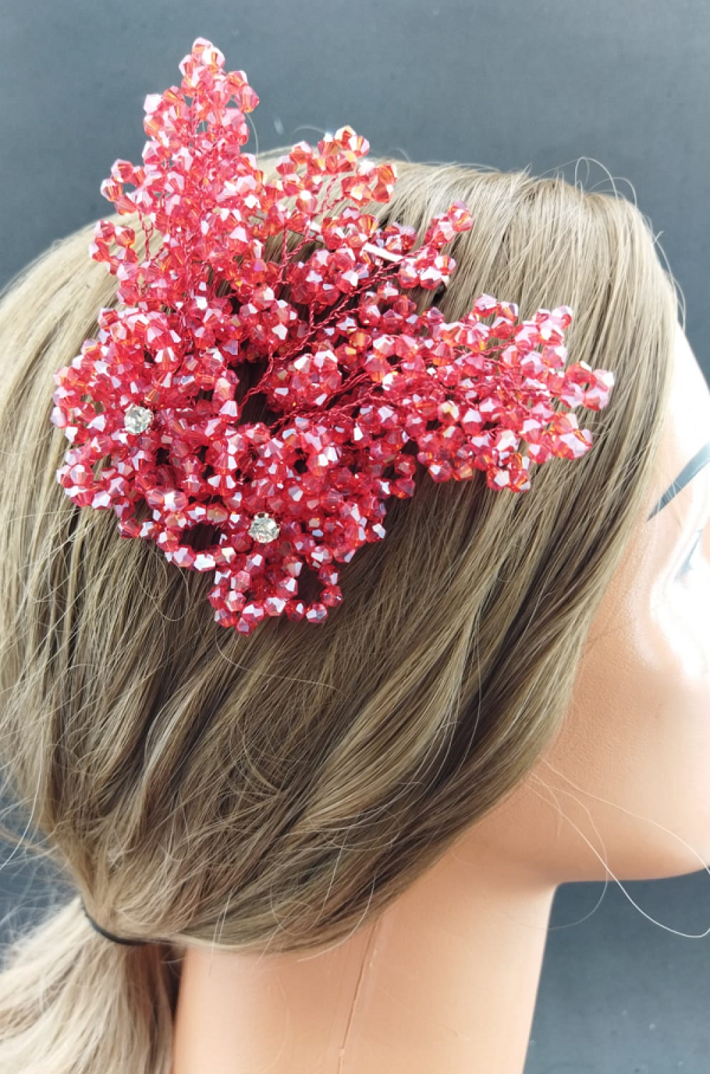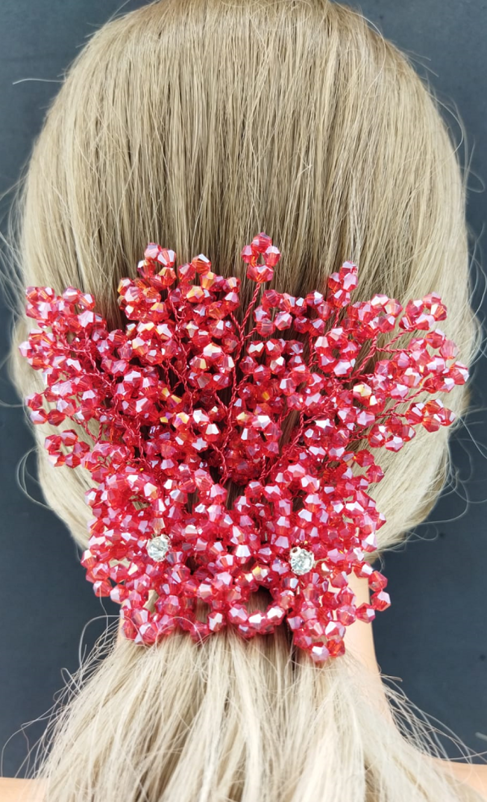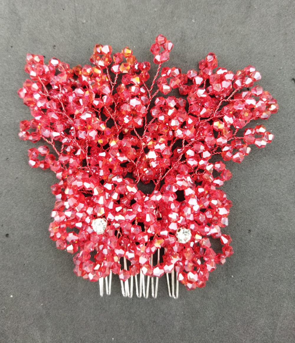 Kırmızı Kristallerle Süslenmiş Çiçek Deseni Detaylı Kına Tokası