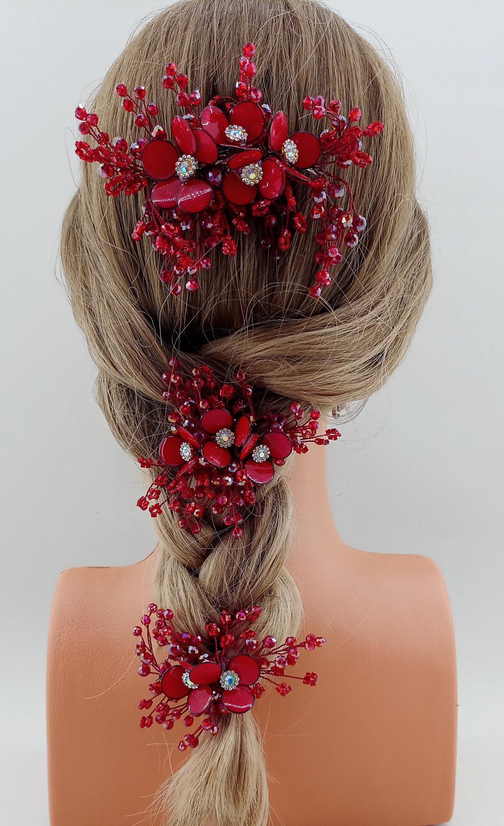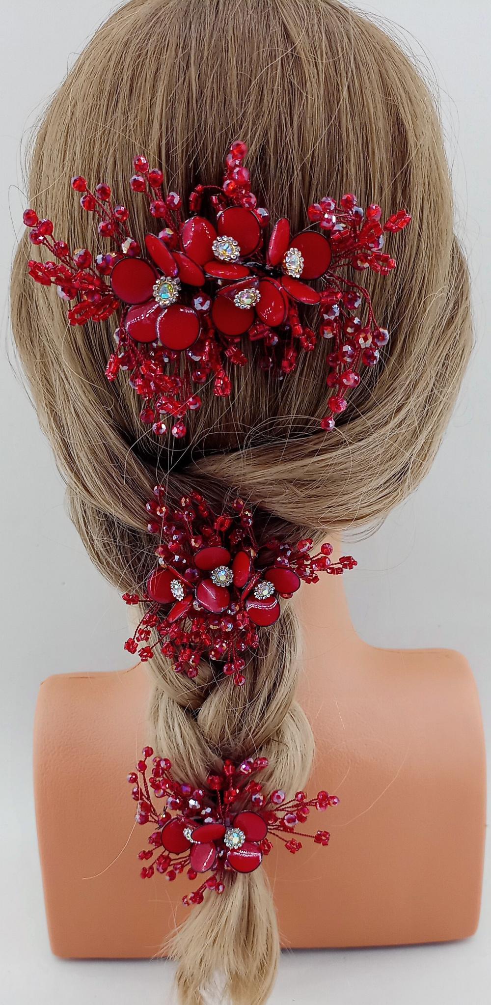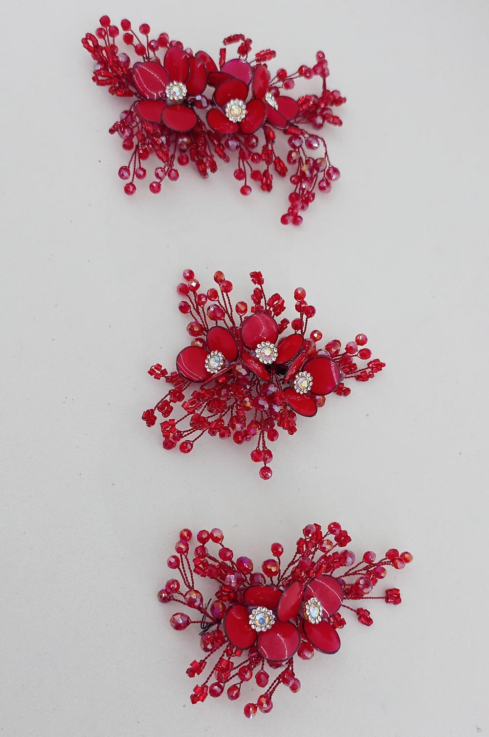 Kırmızı Kristallerle Süslenmiş Kına Saç Tokası