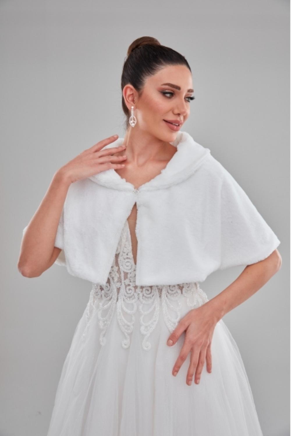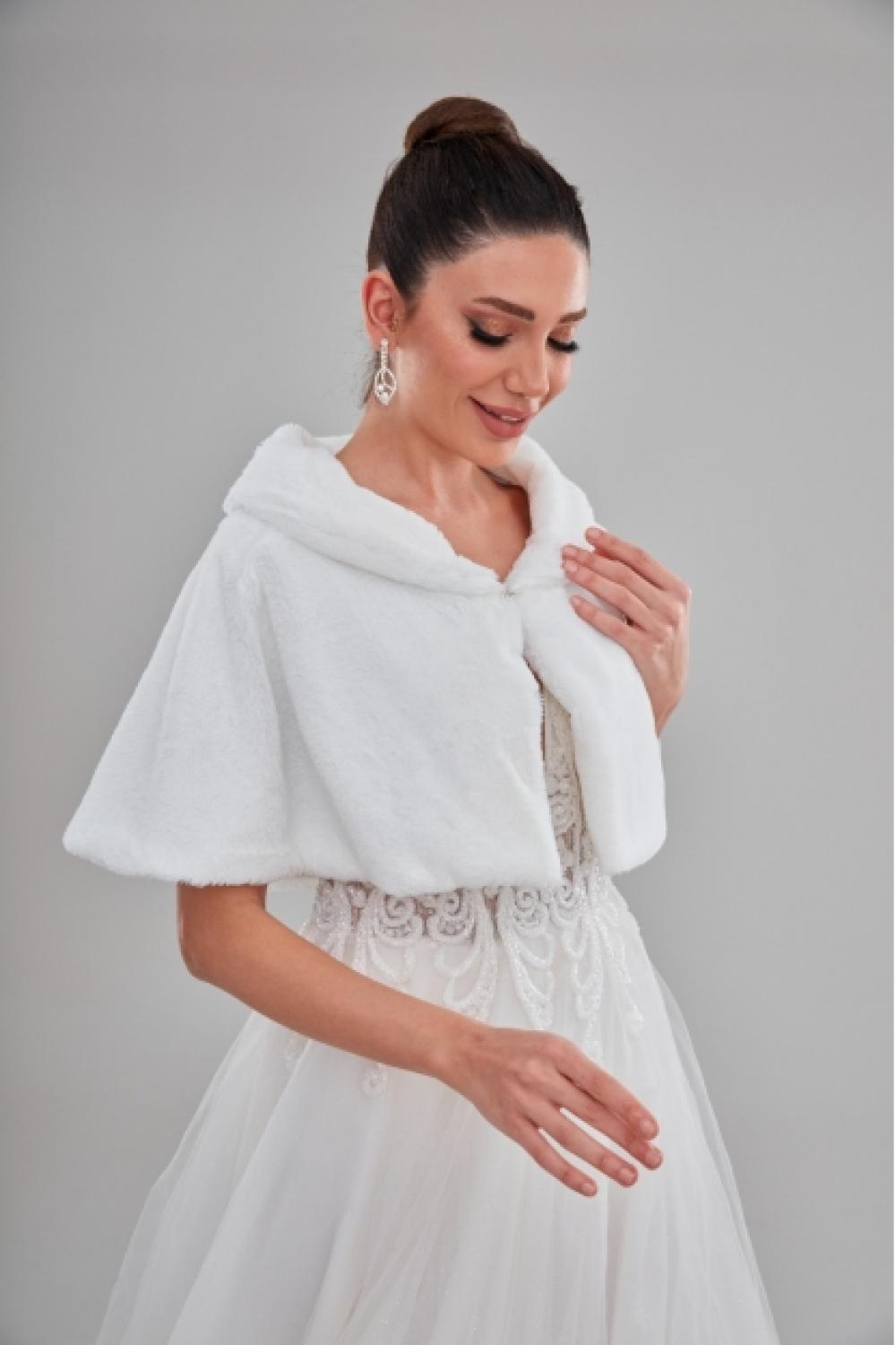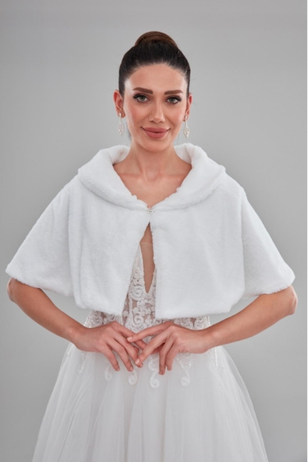 Kısa Beyaz Çift Yaka Gelin Etol Kürk Bolero