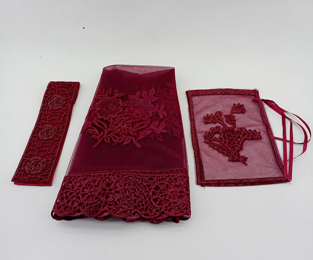Koyu Kırmızı Dantel Detaylı Kına Örtüsü Seti