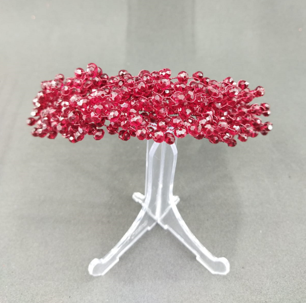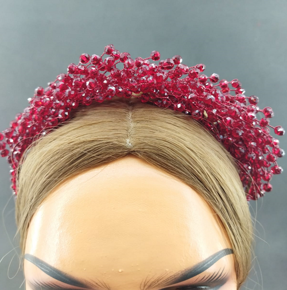 Koyu Kırmızı Kristal Toplarla Süslenmiş Kına Tacı