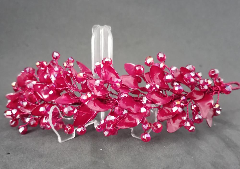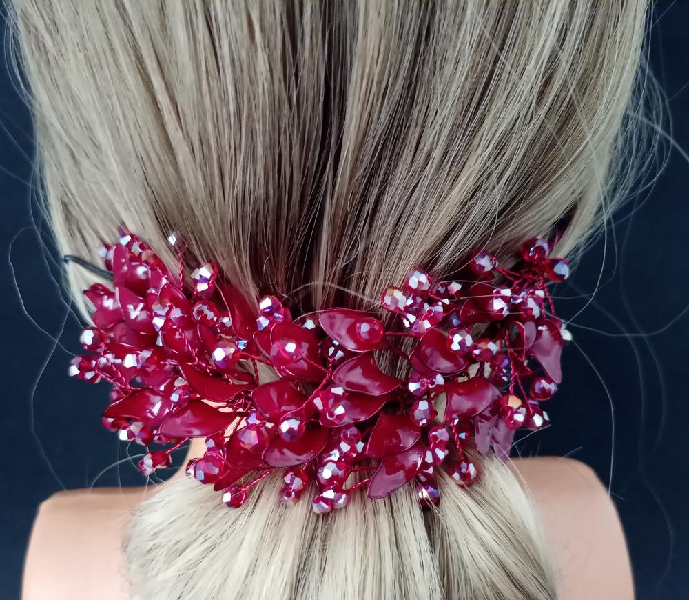 Bordo Yapraklar Ve Kristallerden Oluşan Kına Tacı