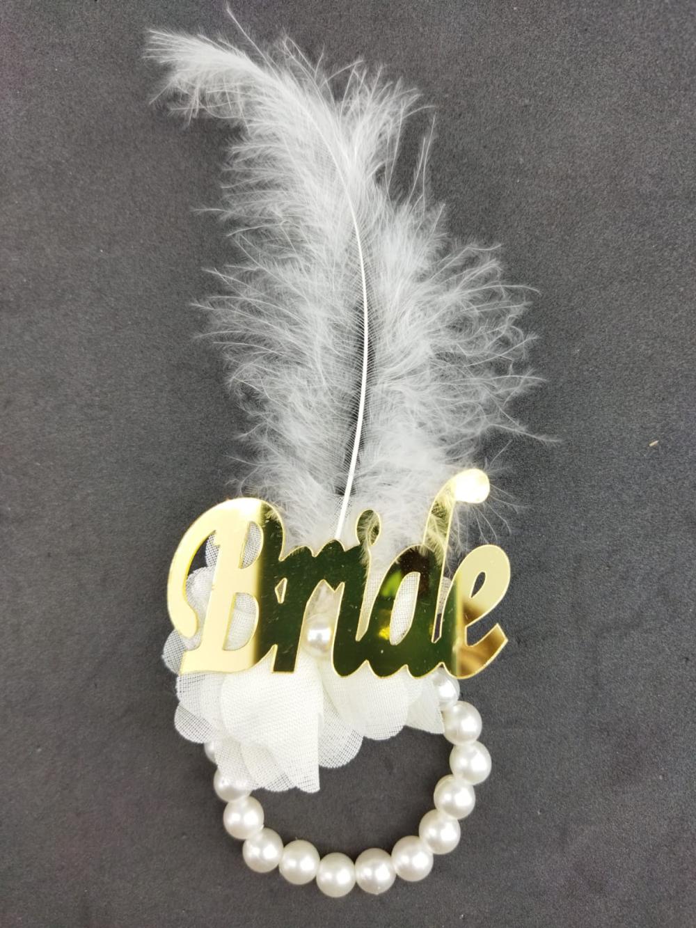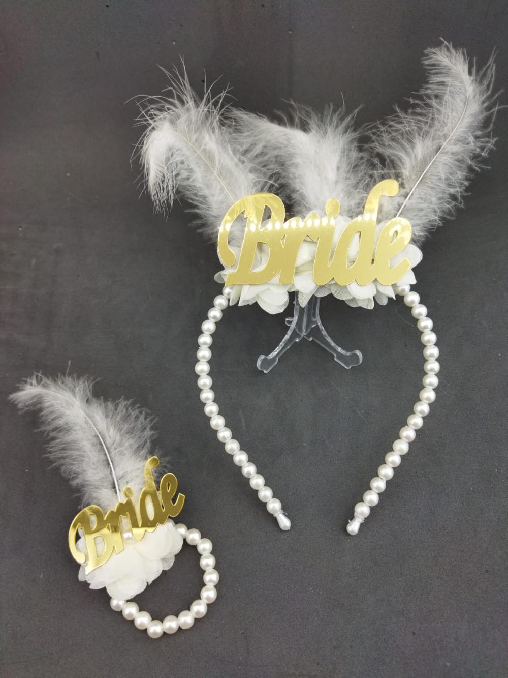 Krem Çiçek Detaylı Gold Renk Bride Taç Ve Bileklik Seti
