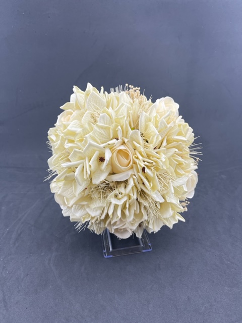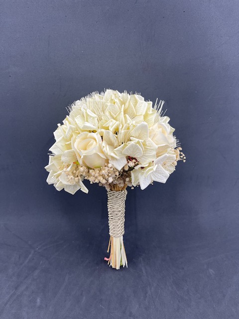 Krem Cipso Ve Pembe Ot Detaylı Ortanca Gül Aranjman Gelin Buketi