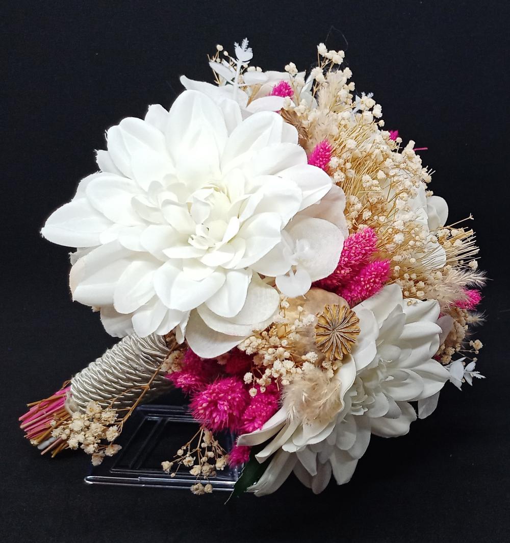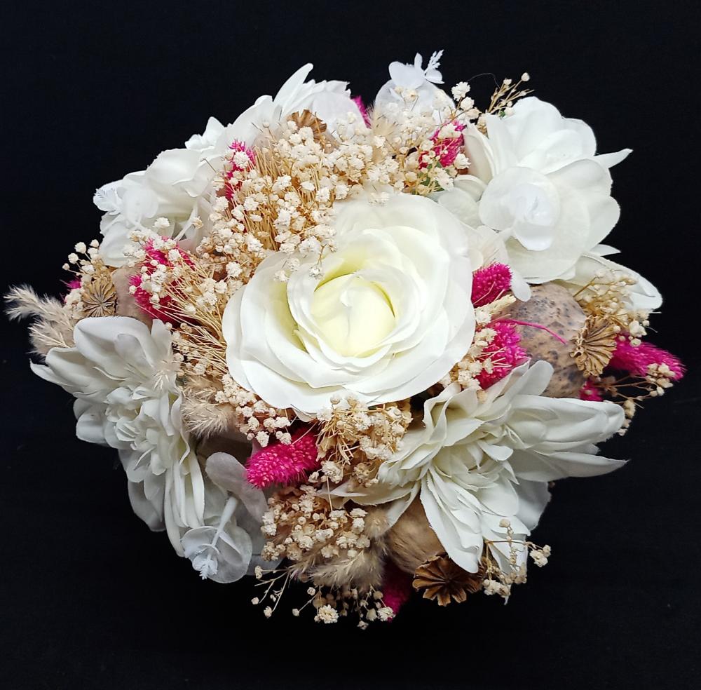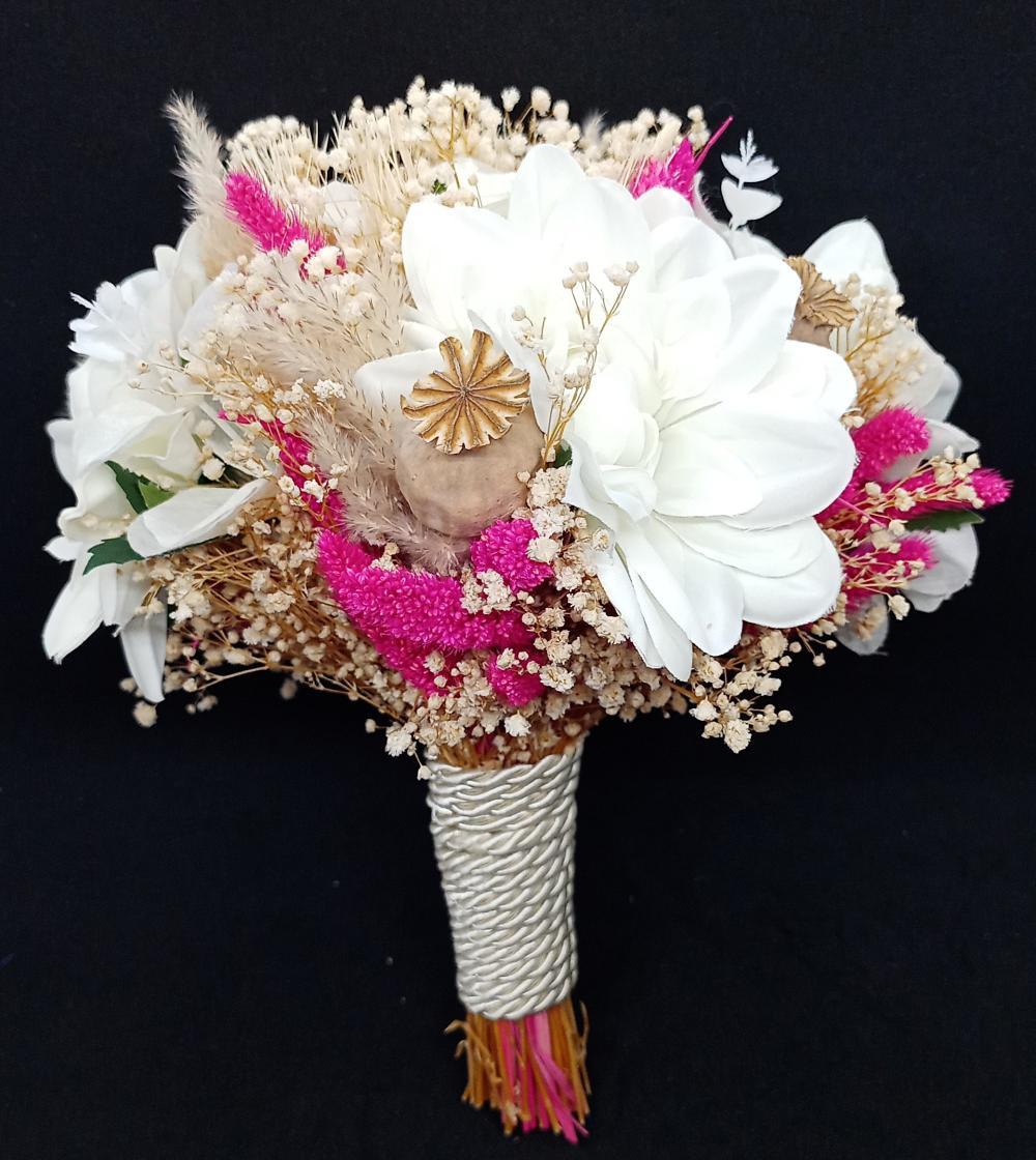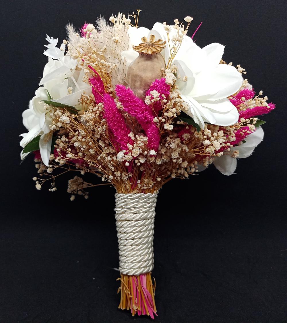 Krem Cipsolar Ve Fuşya Rengi Ot Detaylarına Sahip Gelin Buketi