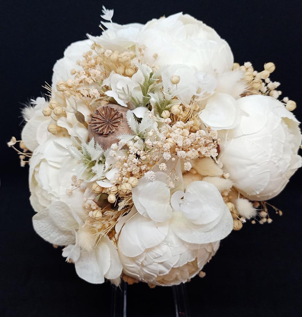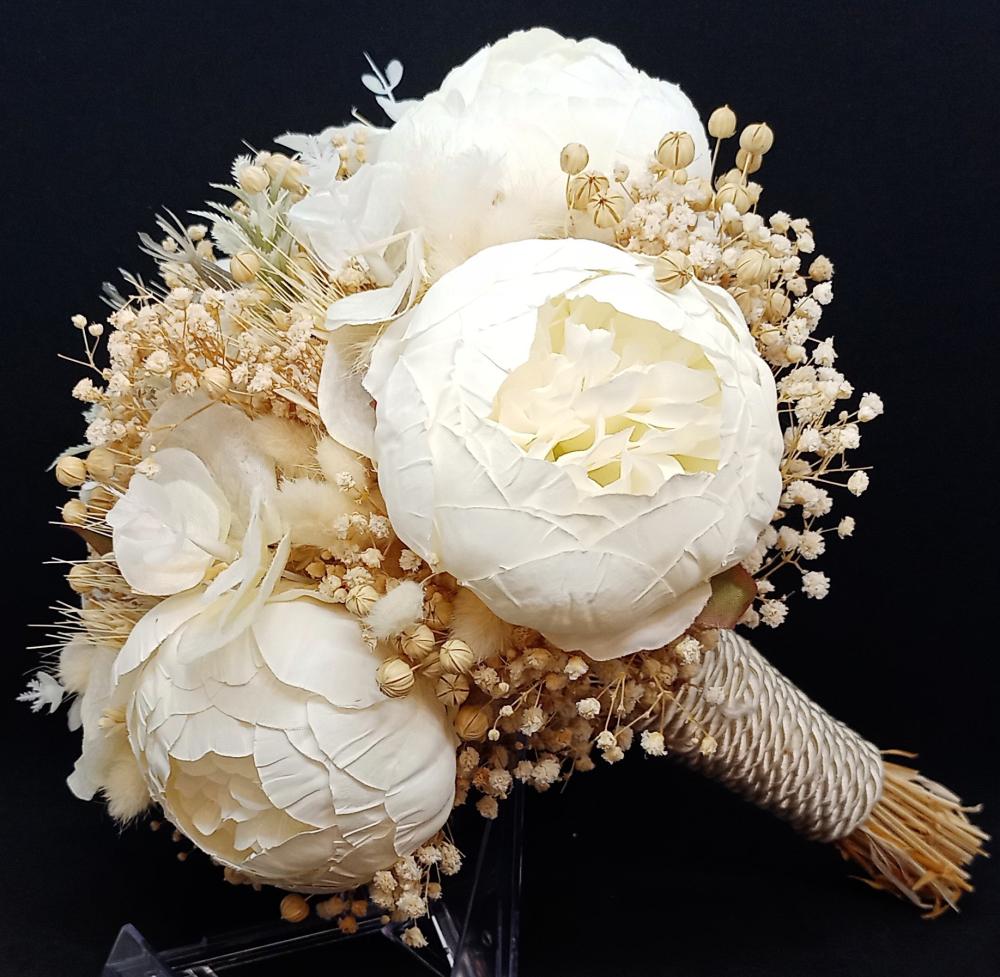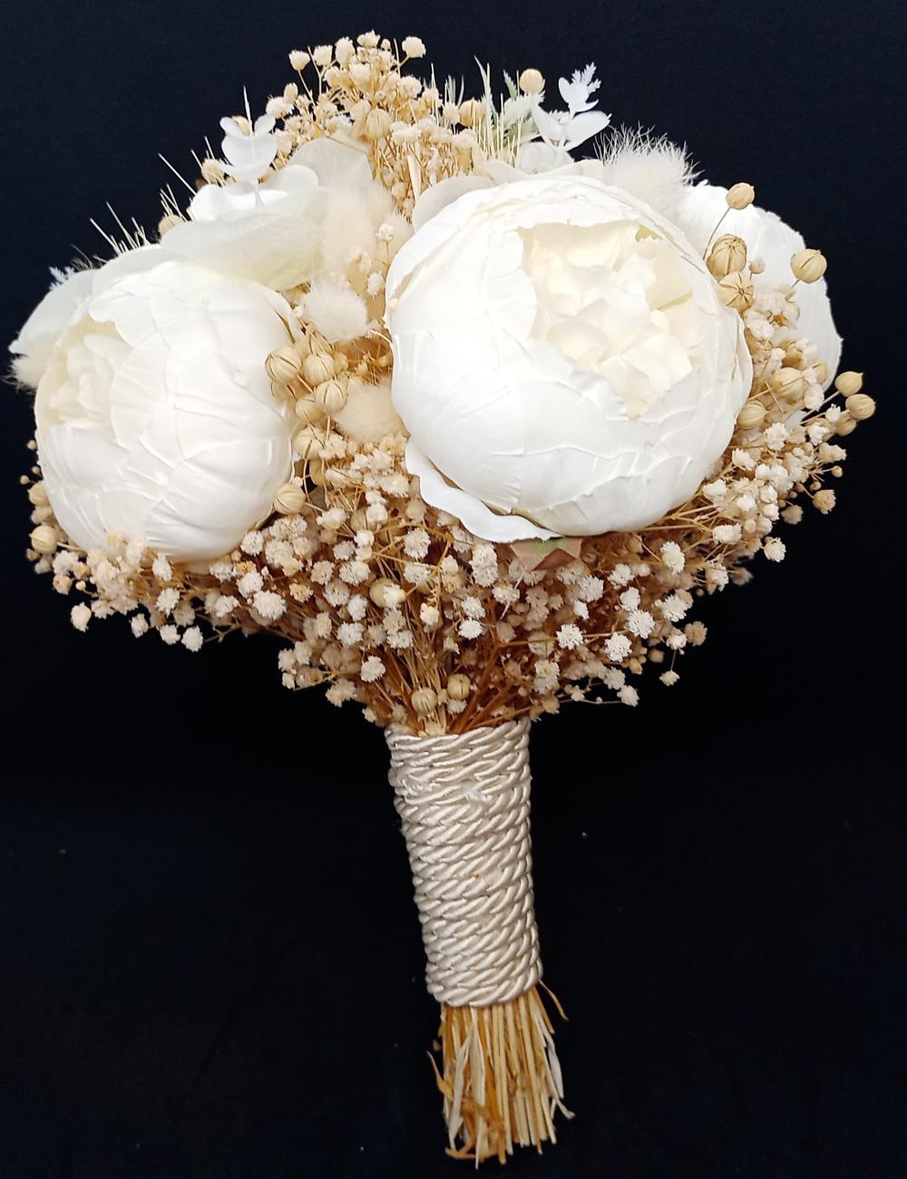Krem Cipsolardan Oluşan Beyaz Şakayık Gelin Buketi