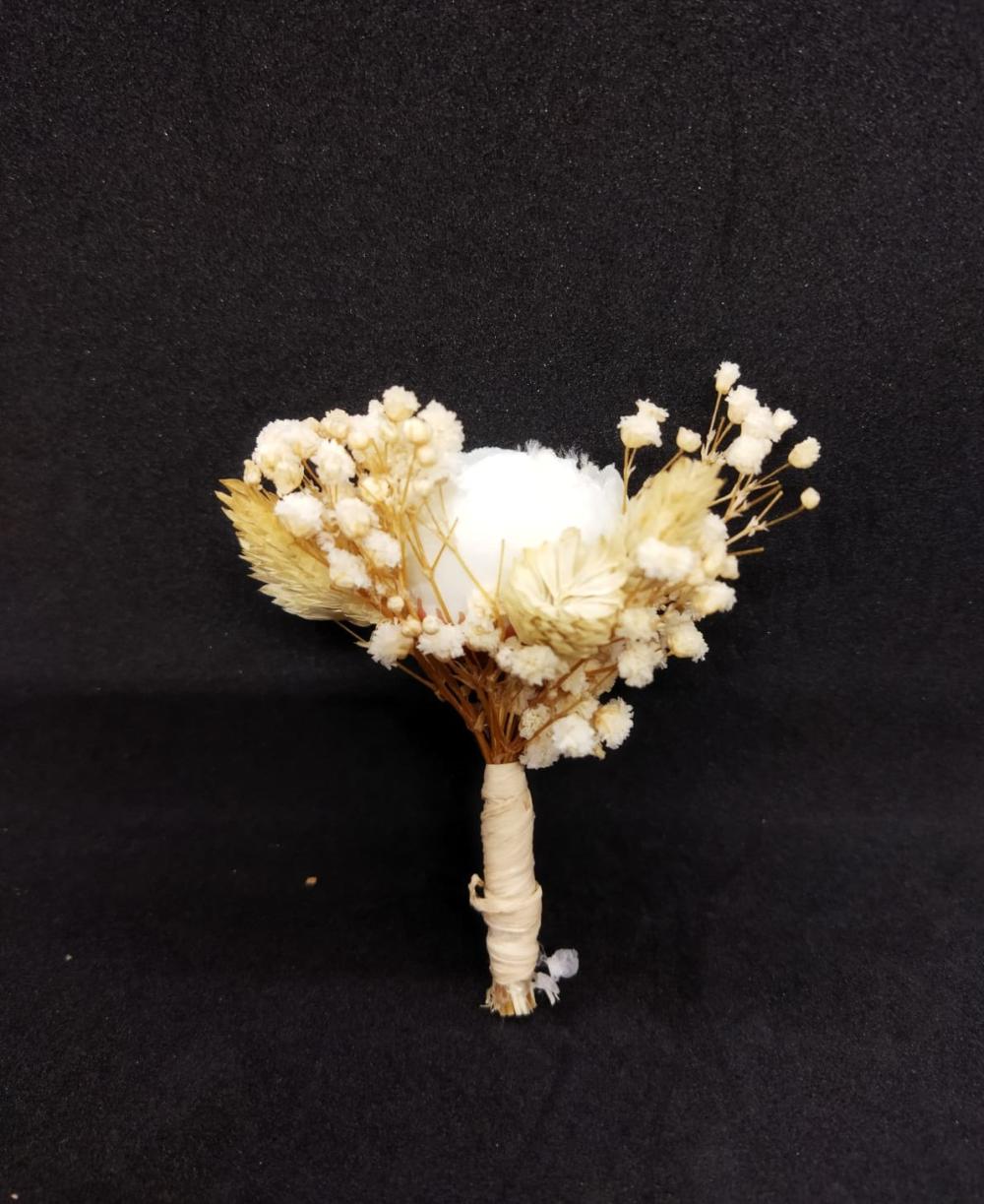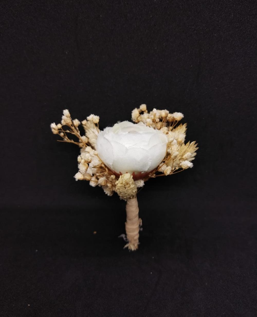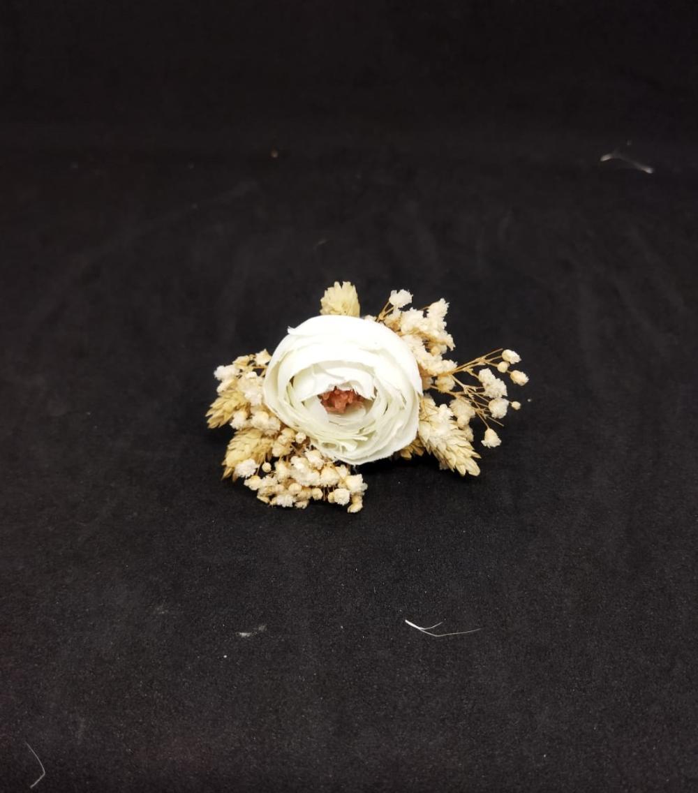 Krem Cipsolarla Süslenmiş Beyaz Gül Damat Yaka Çiçeği