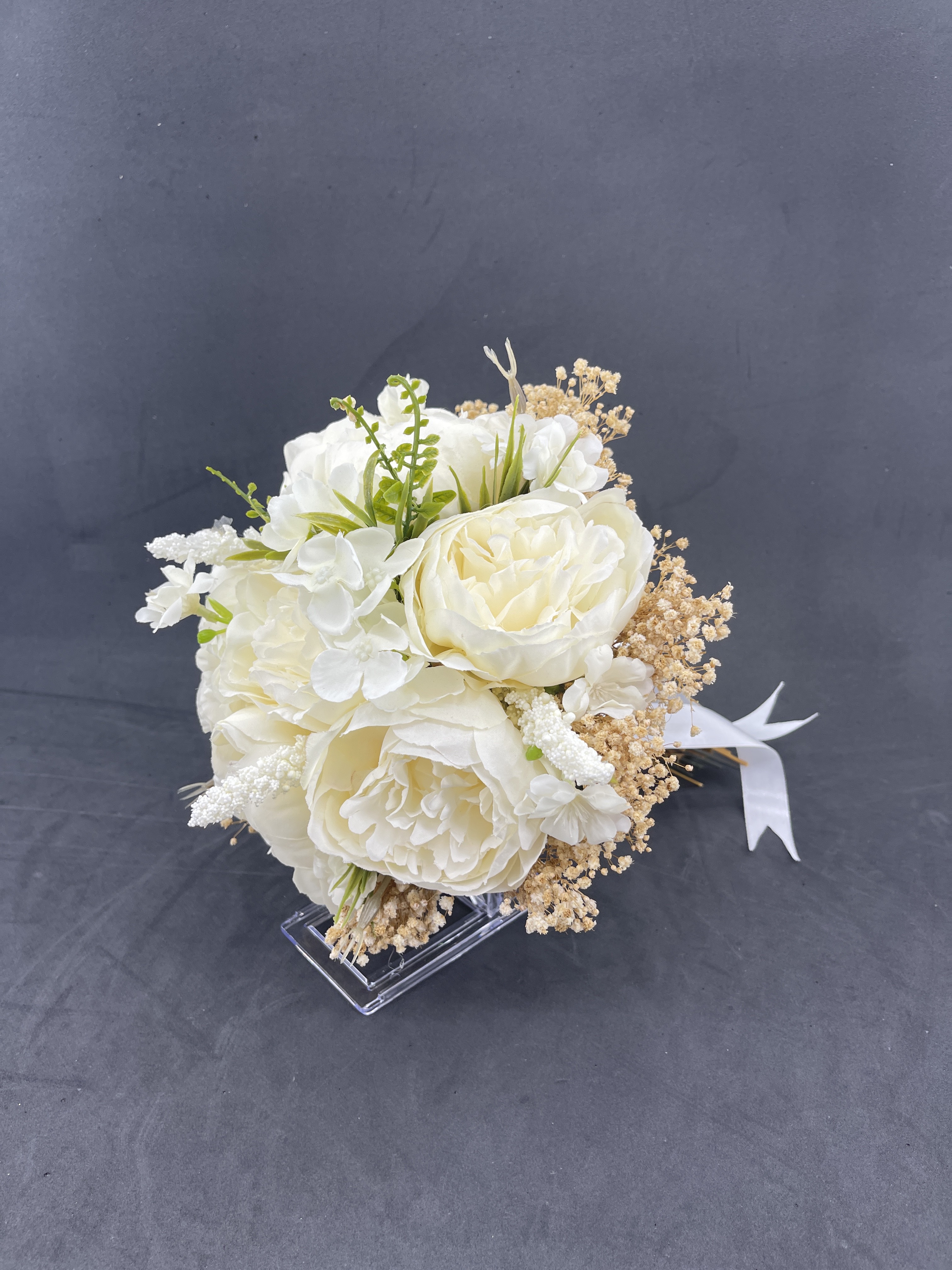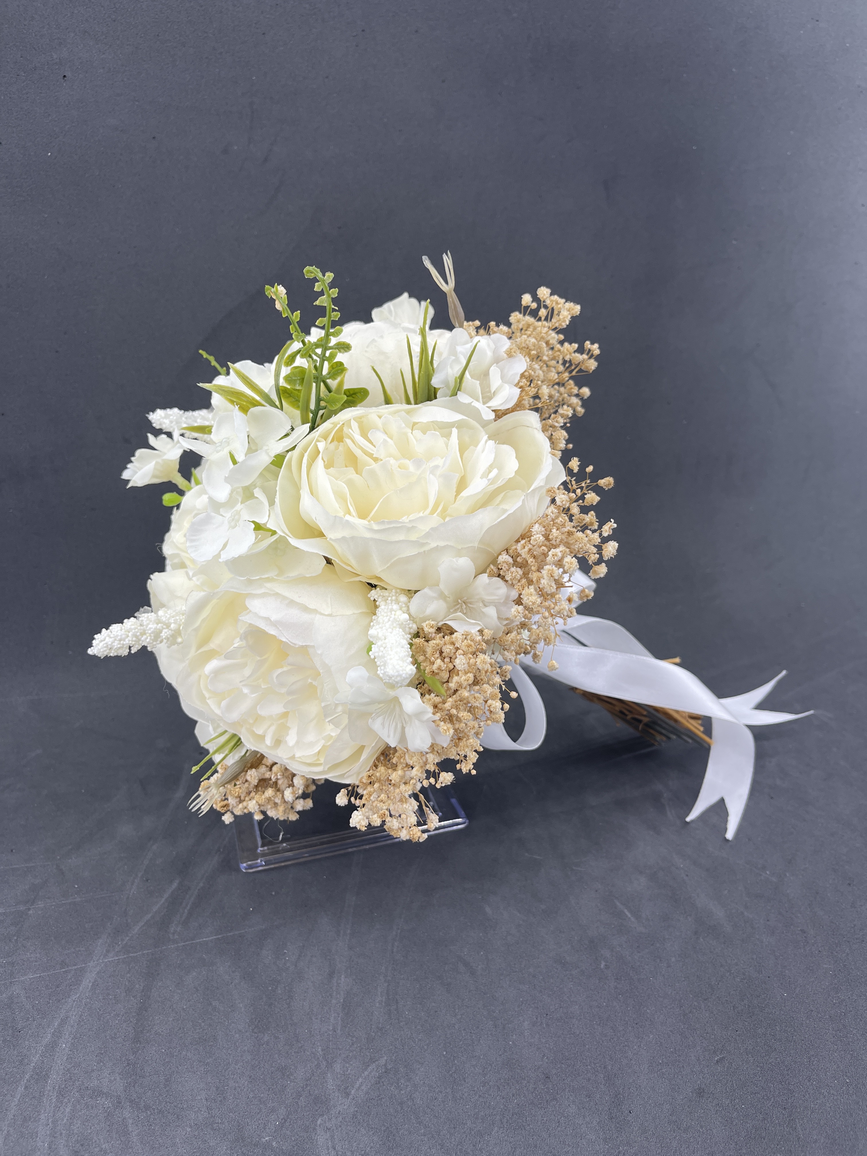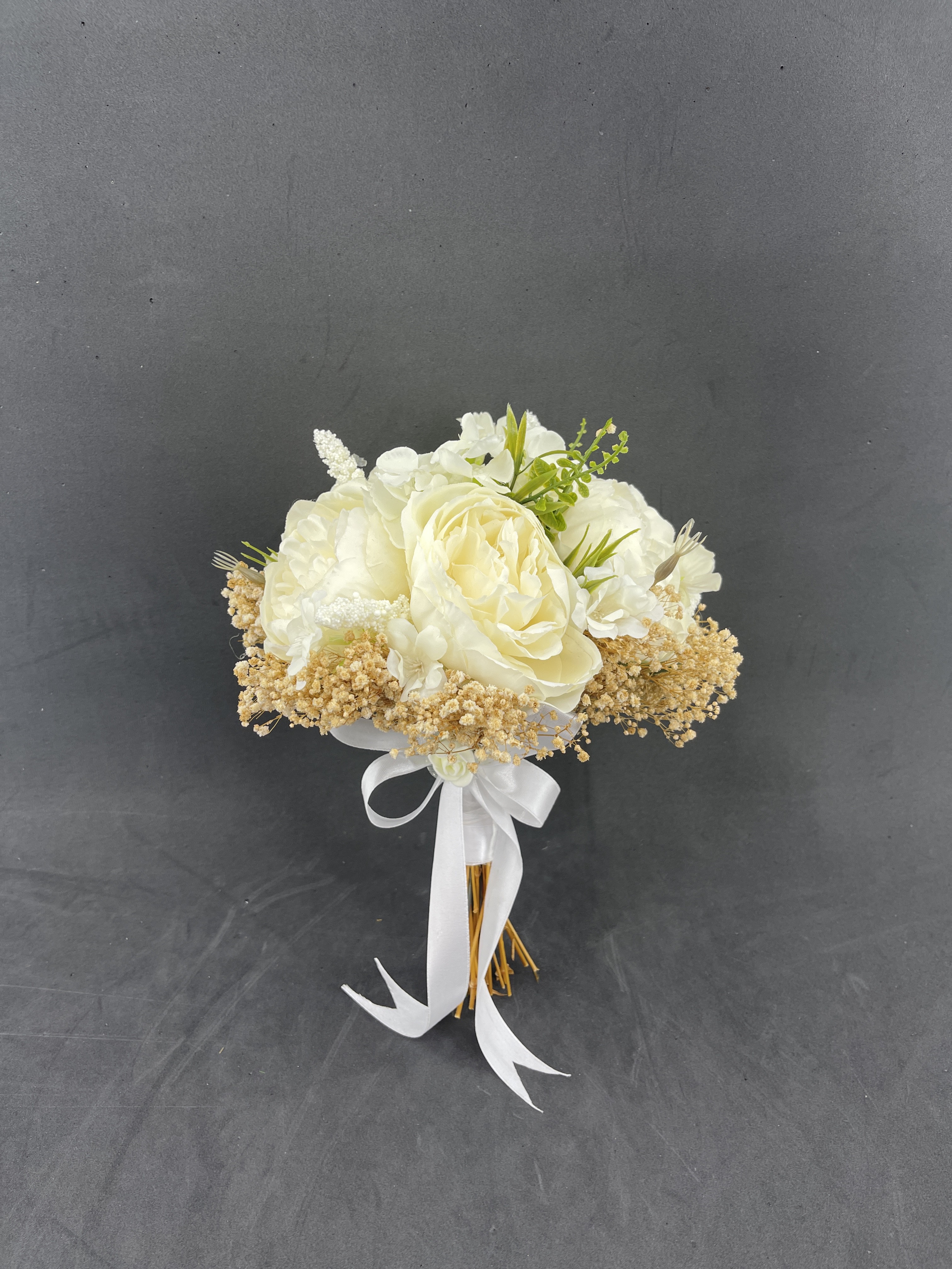 Krem Cipsolarla Süslenmiş Kurdeleli Şakayık Gül Buketi