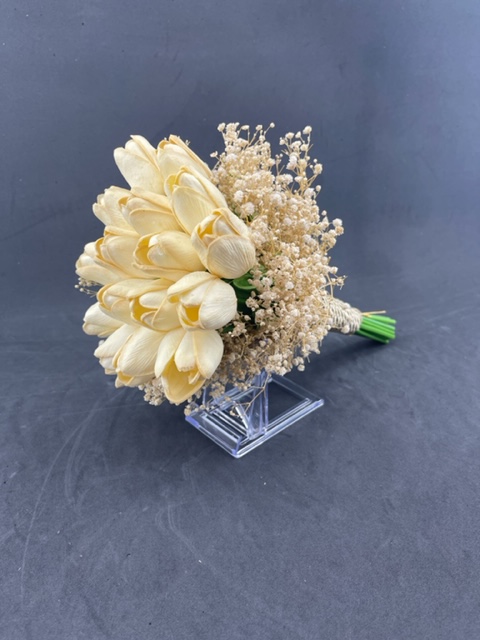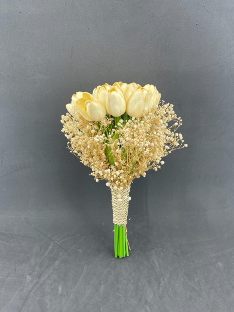 Krem Kır Otları Ve Çövenlerle Süslenmiş Lale Gelin Buketi