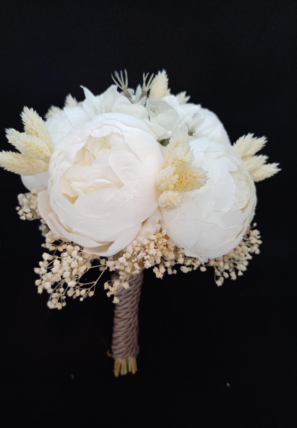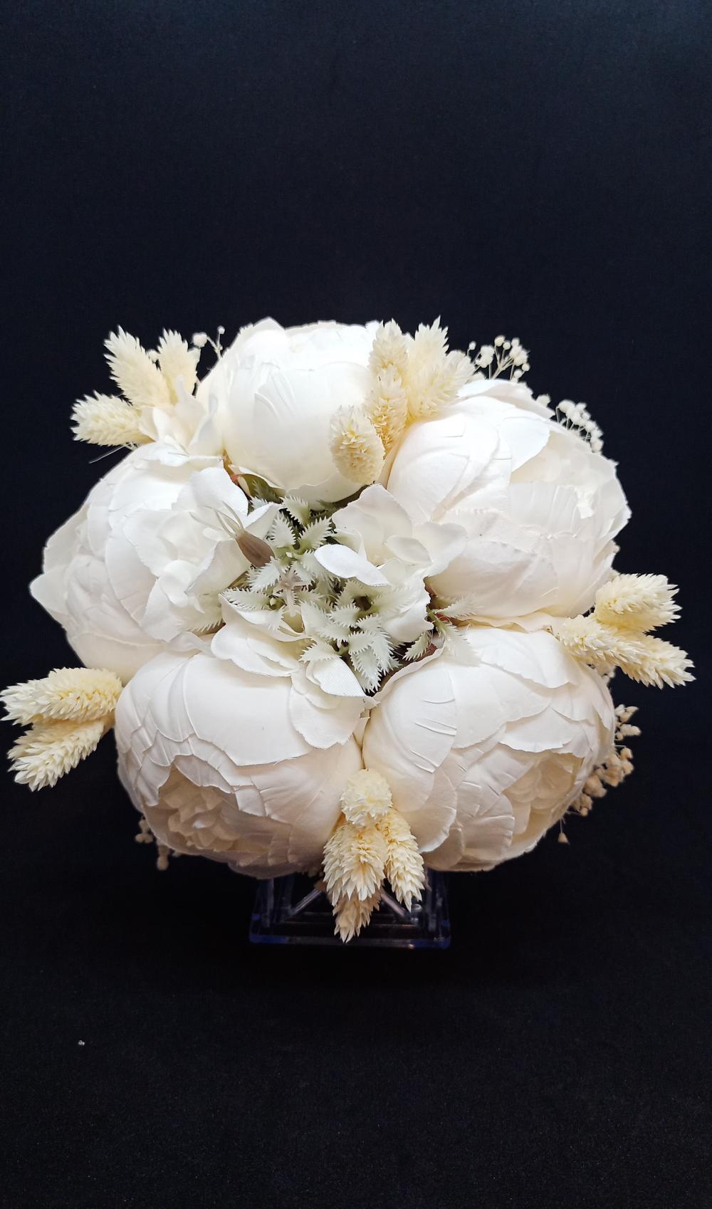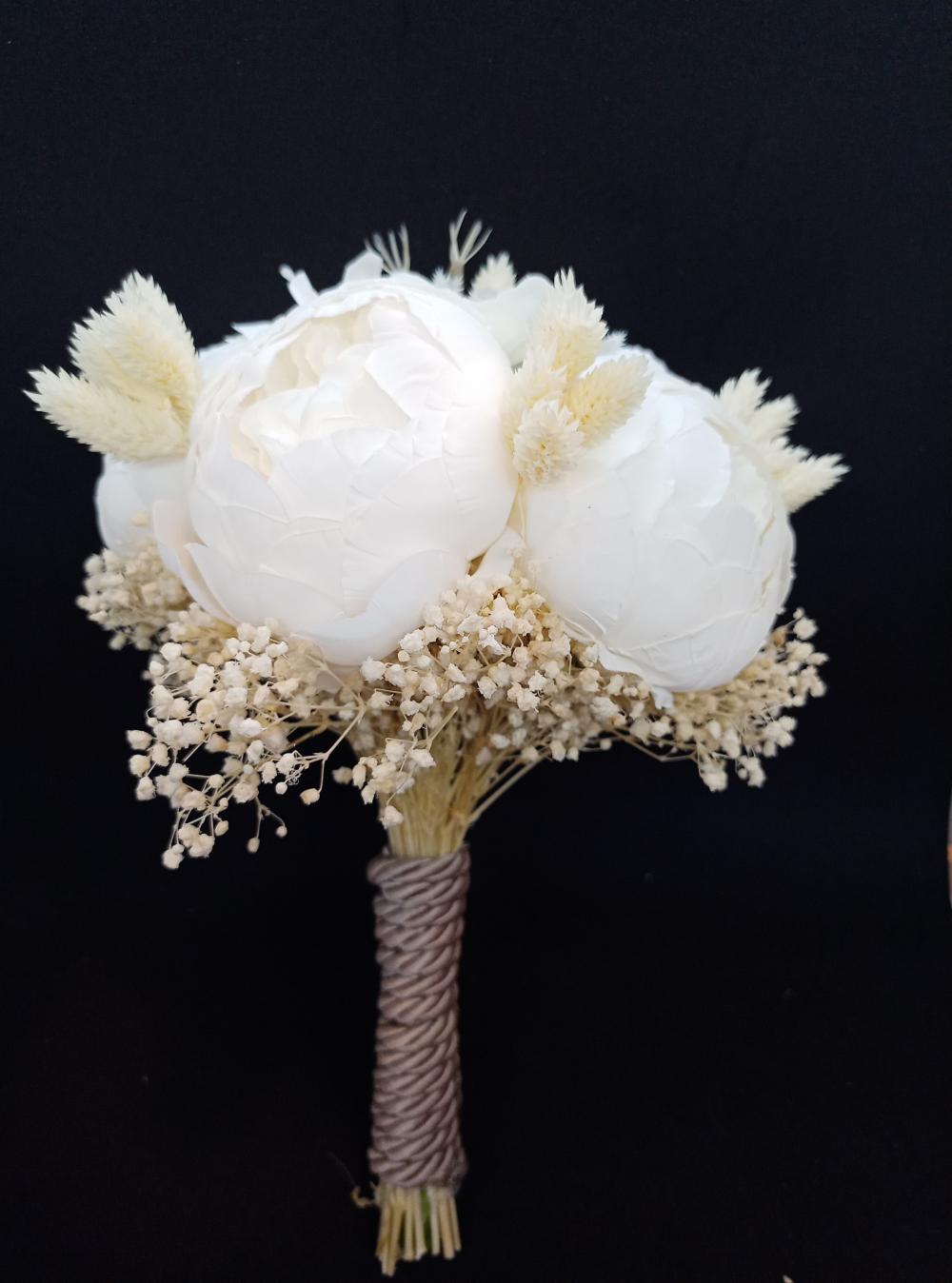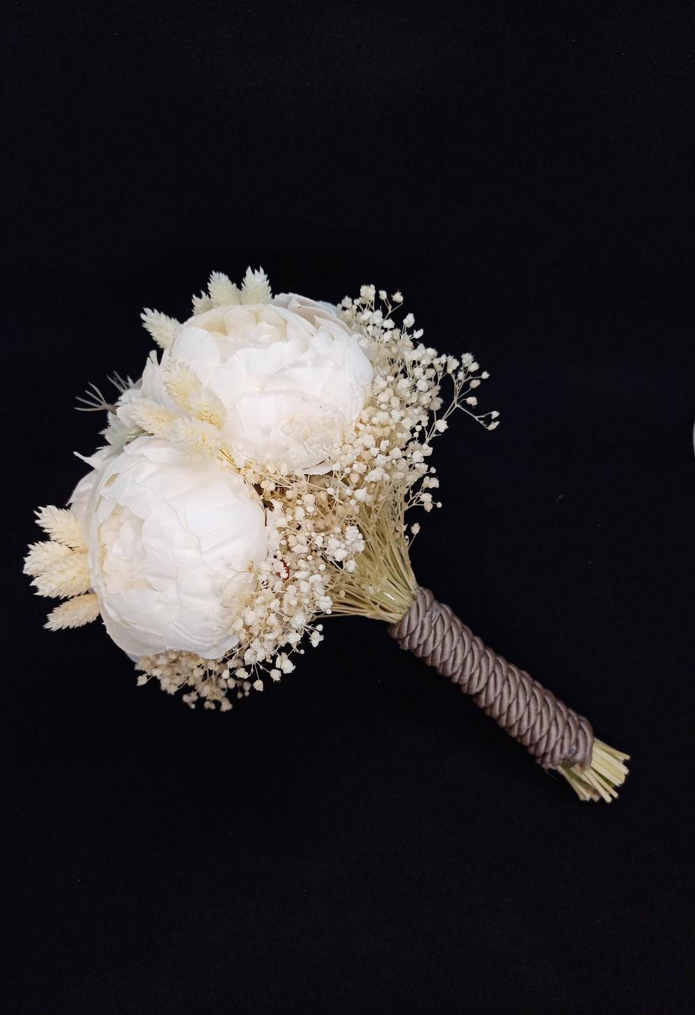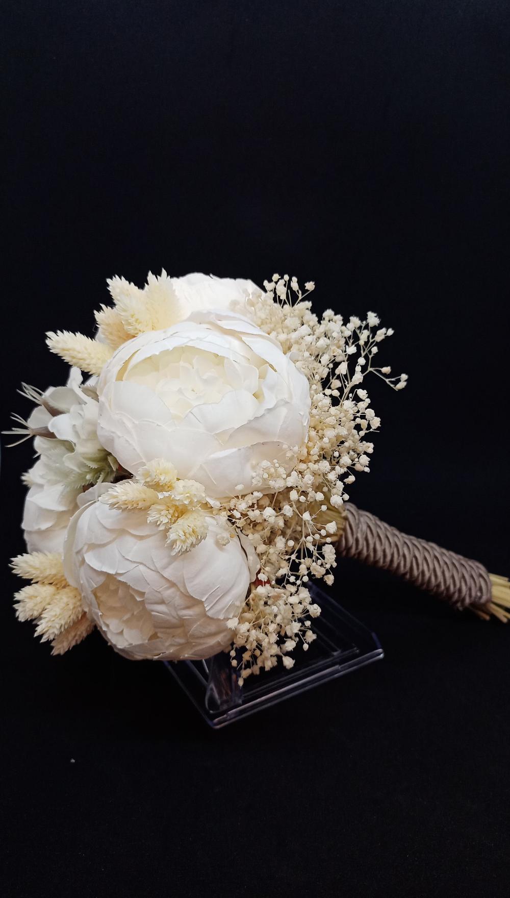 Krem Rengi Cipsolardan Oluşan Beyaz Gül Gelin Buketi