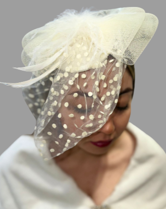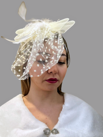Krem Tonlarda File Tüy ve Süs Detaylı Vualet Şapka Nikah Kepi