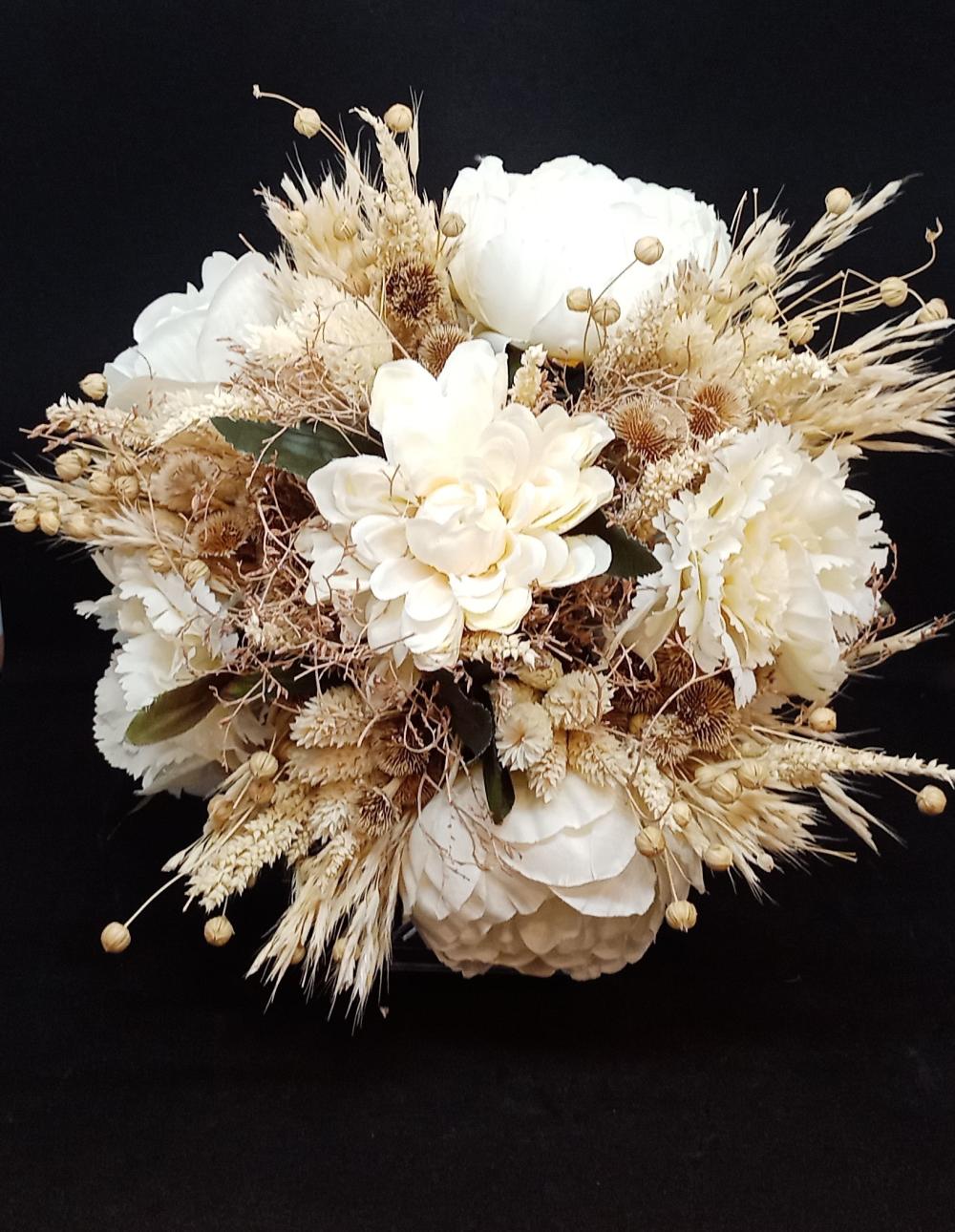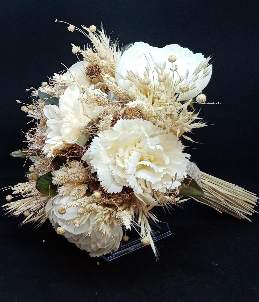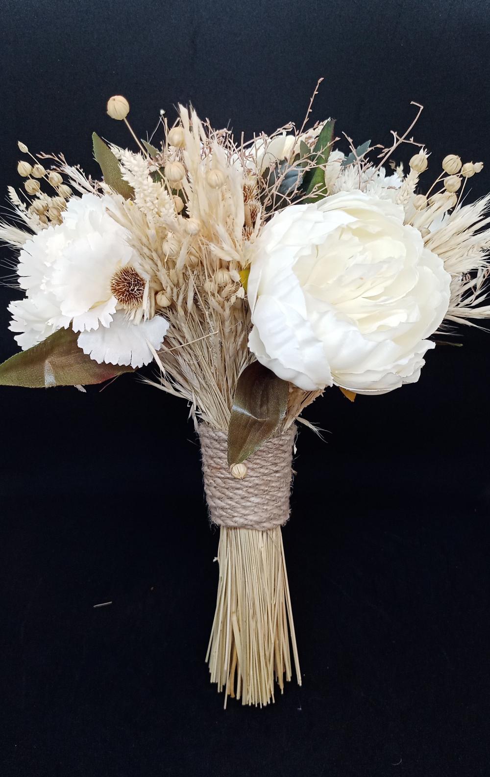 Krem Tonları Cipsolarla Süslenmiş Beyaz Gelin Buketi