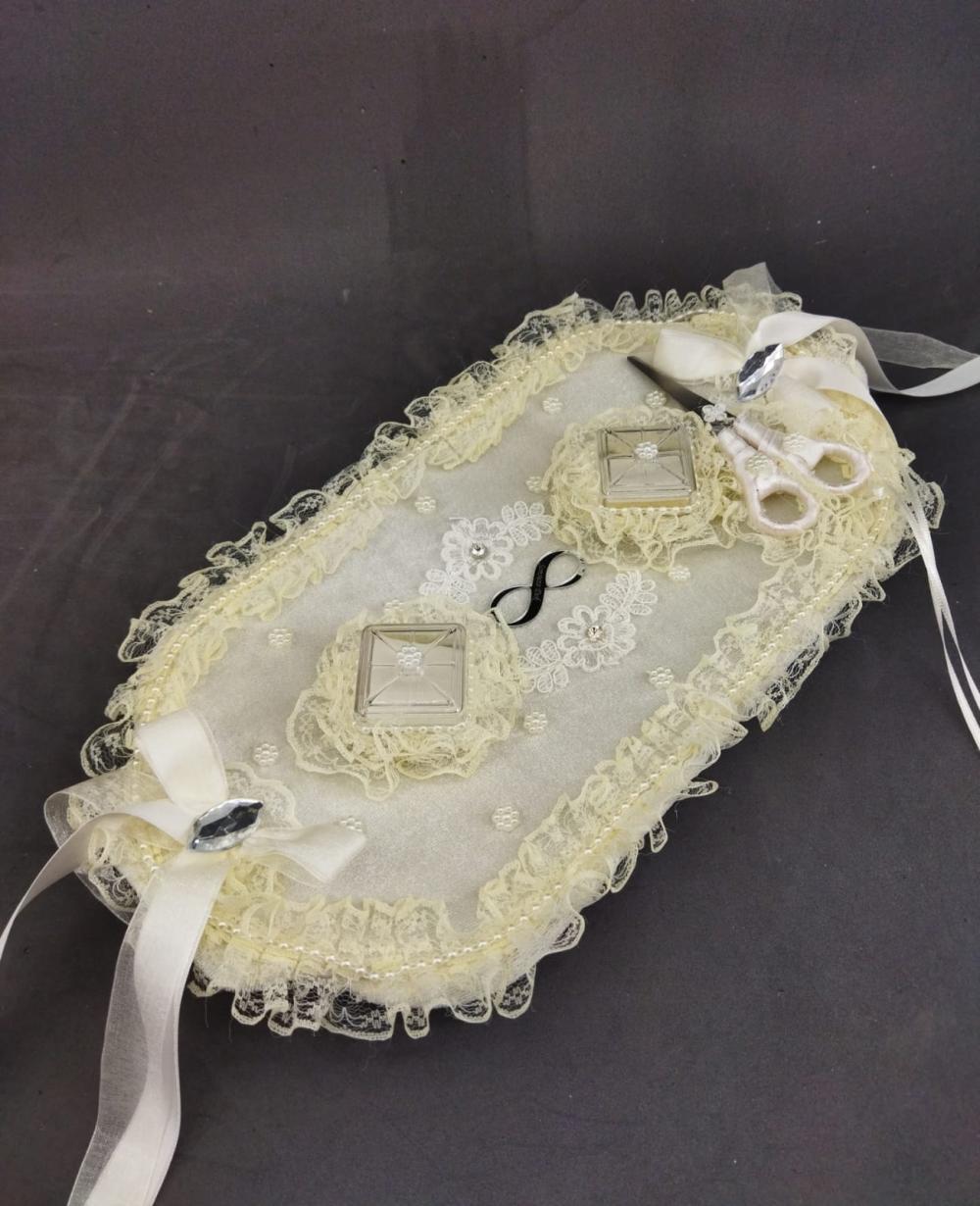 Krem Ve Beyaz Renk Dantel Detaylı Söz - Nişan Tepsisi