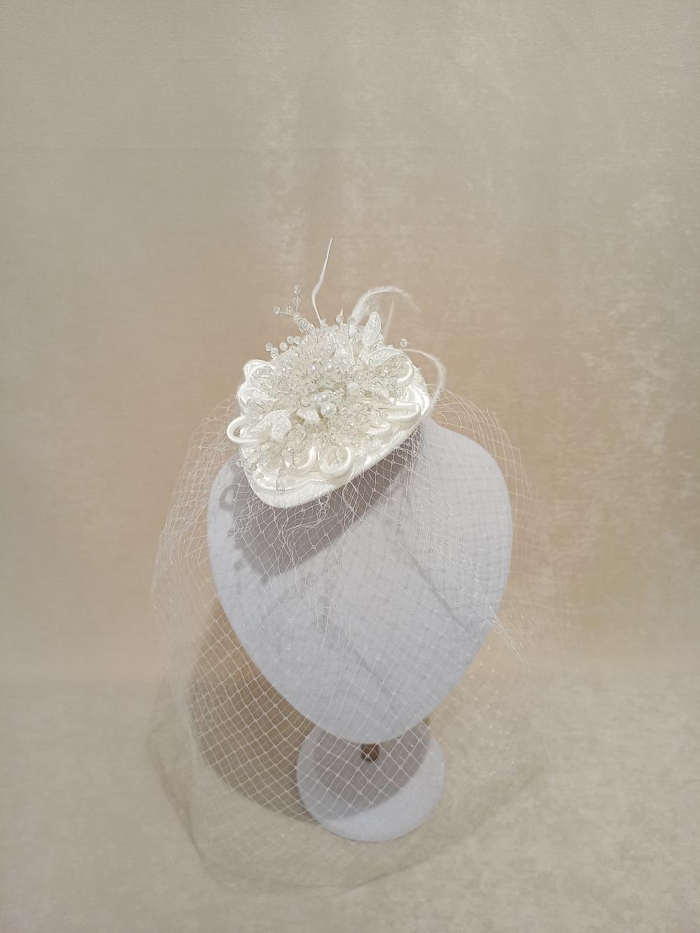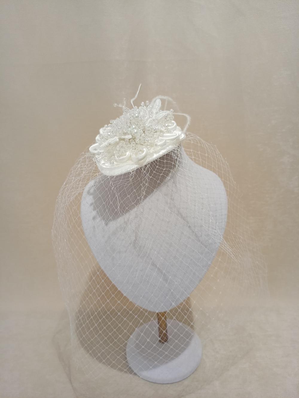 Kristal Boncuk ve Dantel Detaylı Vualet Nikah Şapkası