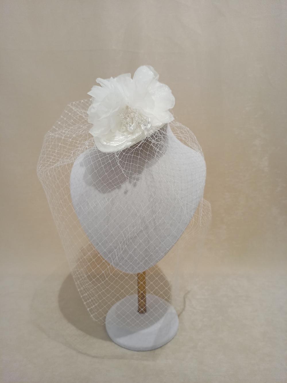 Kristal Boncuk ve Kumaş Çiçek Modelli Vualet / Kep