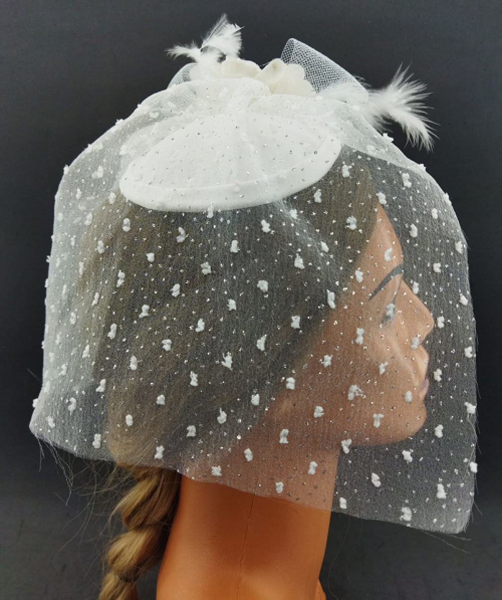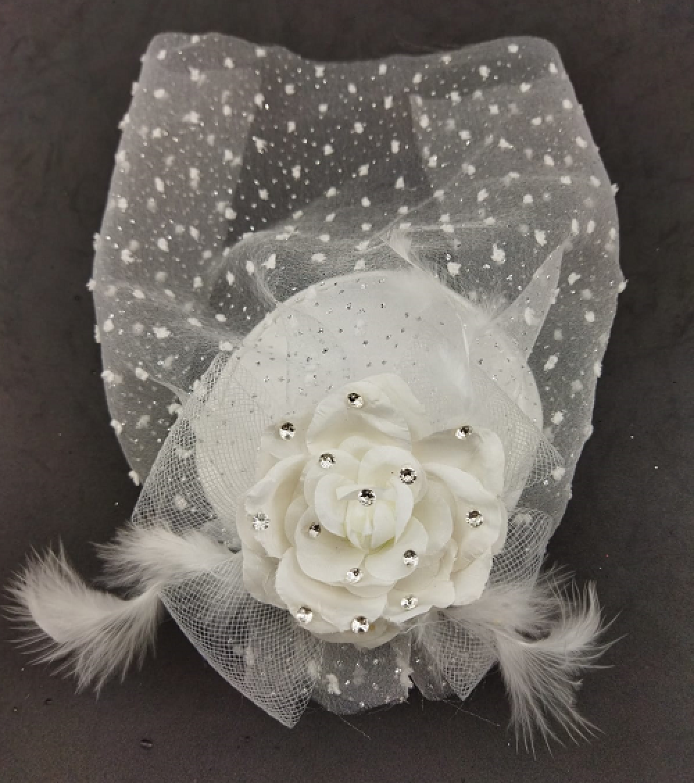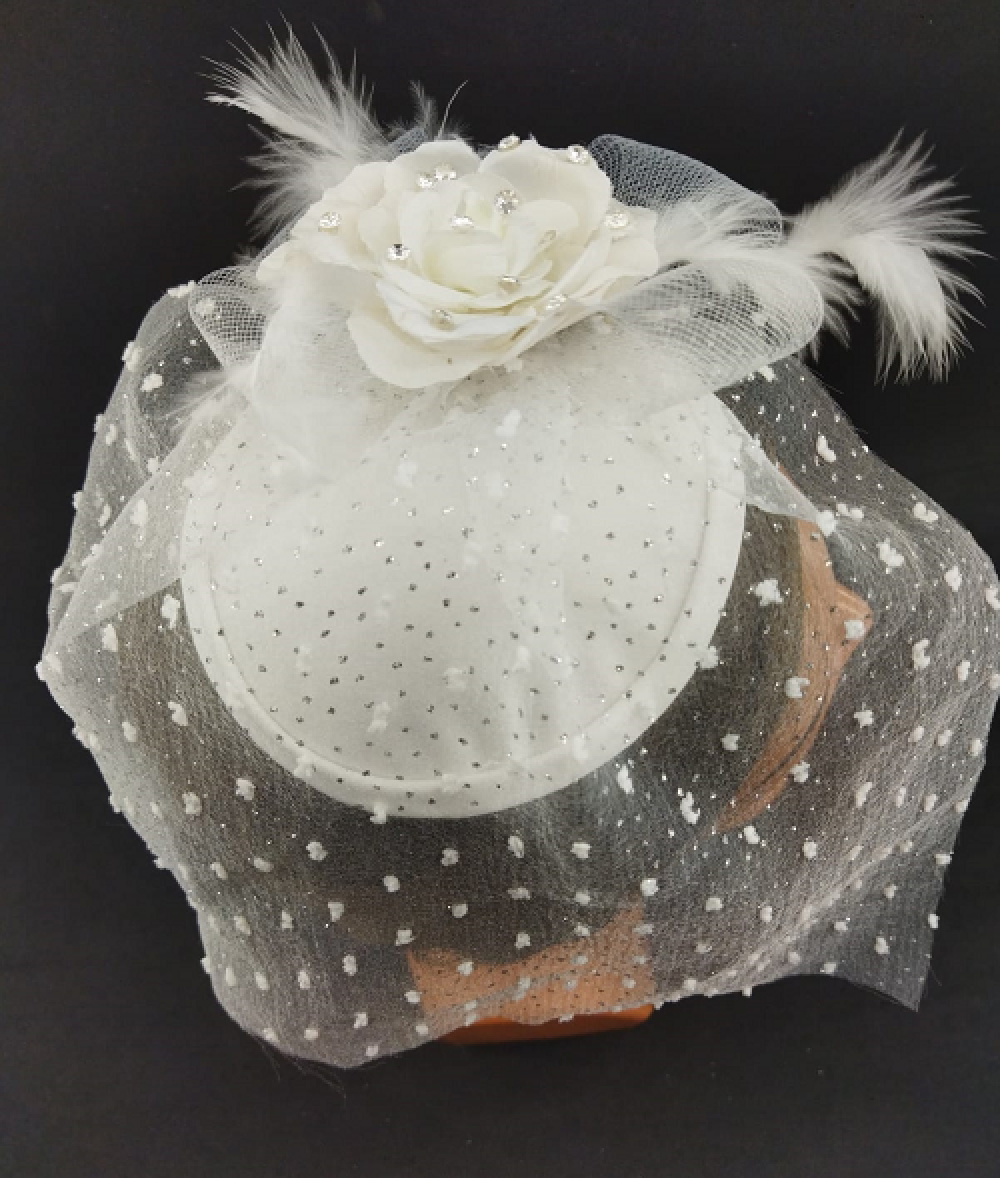 Kristal Taş Detaylı Güle Sahip Beyaz Gelin Vualet Şapka Nikah Kepi