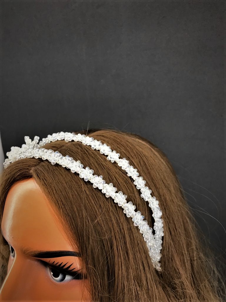 Kristal Taşlardan Oluşan Çift Sıra Gelin Tacı