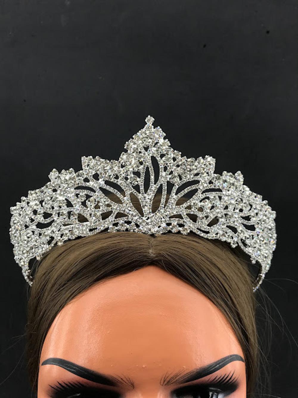 Kristal Taşlarla İşlenmiş Yüksek Prenses Model Gelin Tacı