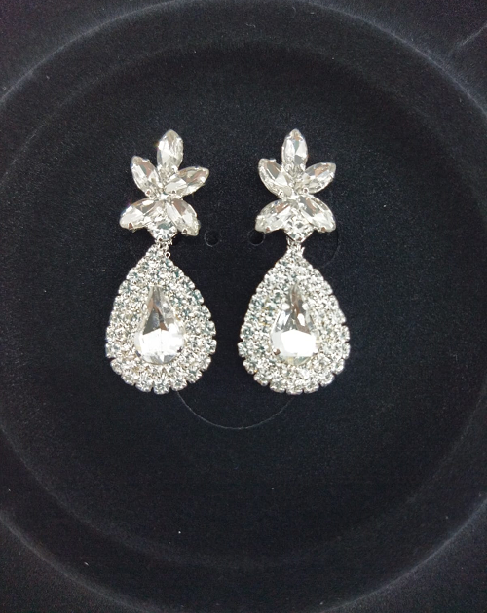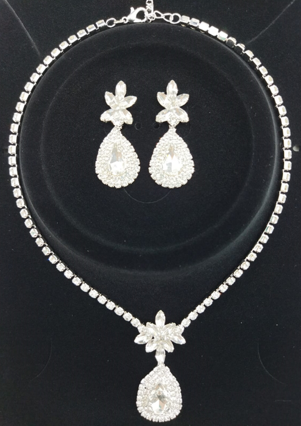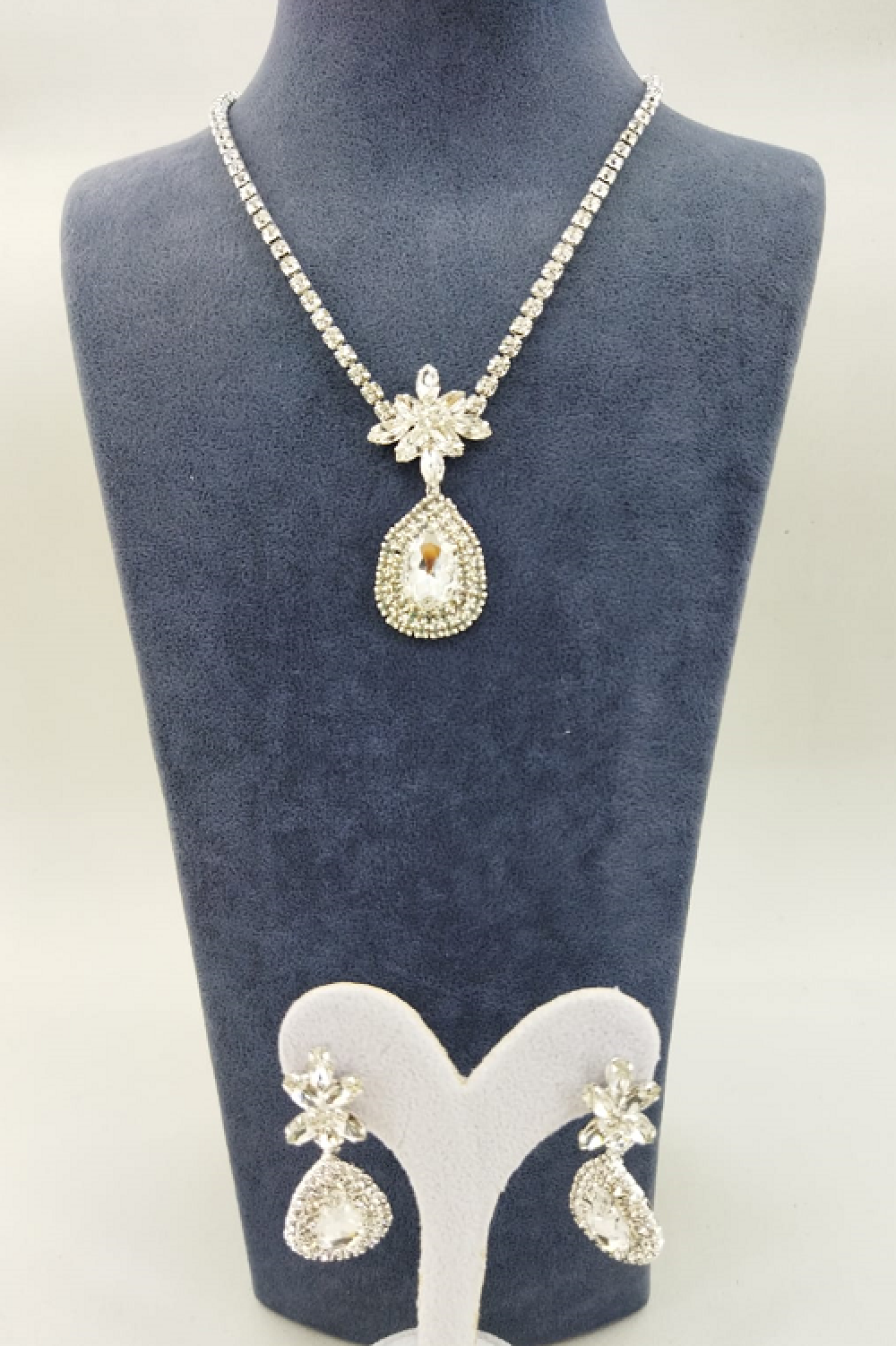 Gümüş Renk Kristal Taşlarla Oluşturulmuş Kolye Ve Küpe Takı Seti