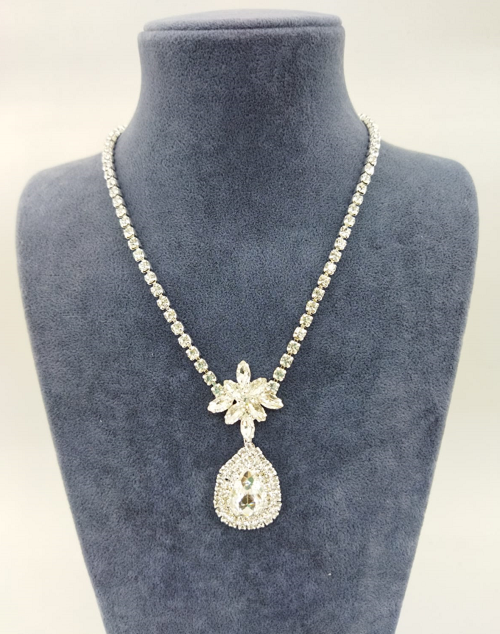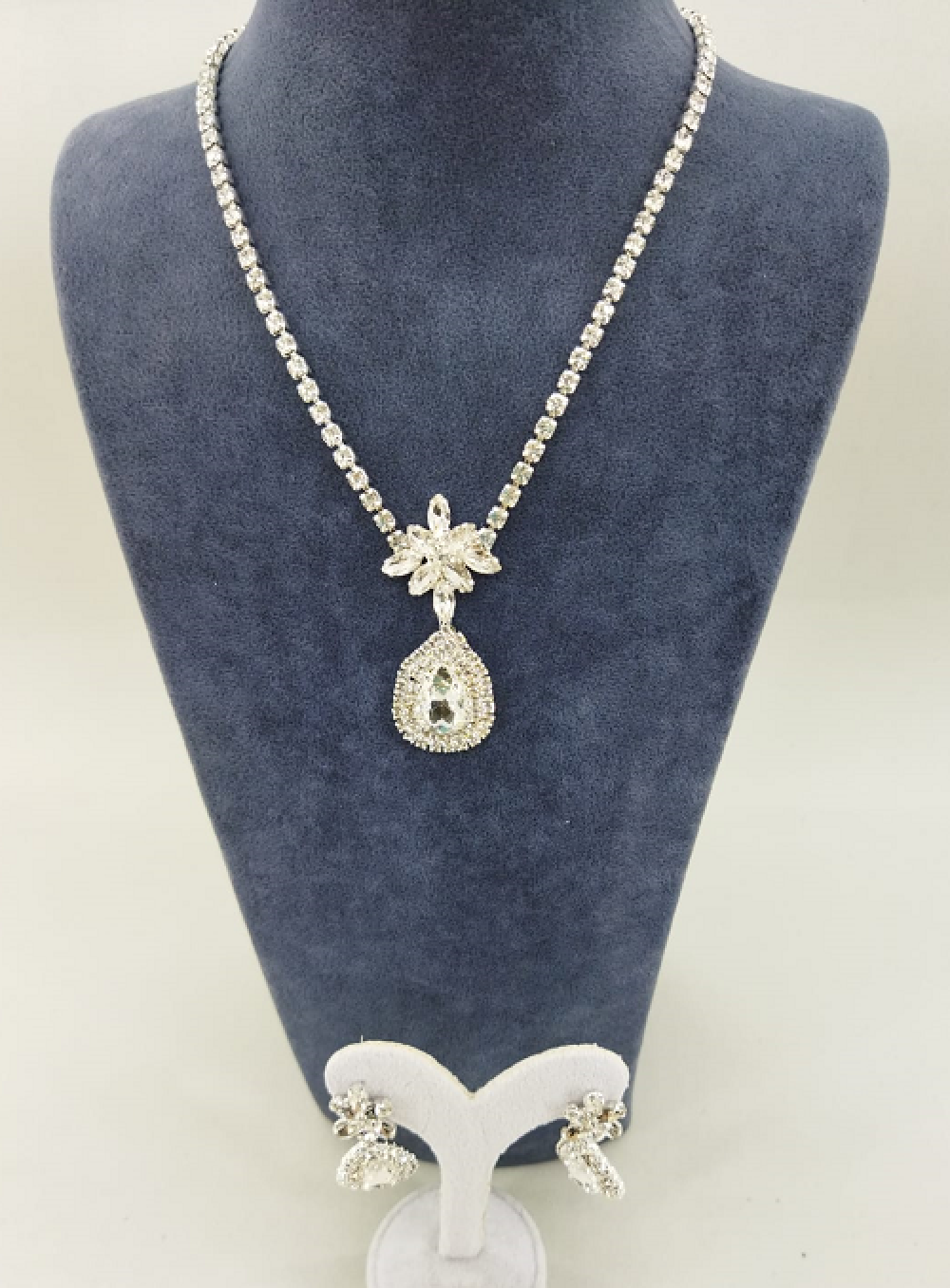 Kristal Taşlarla Oluşturulmuş Kolye Ve Elmas Detayına Sahip Takı Seti