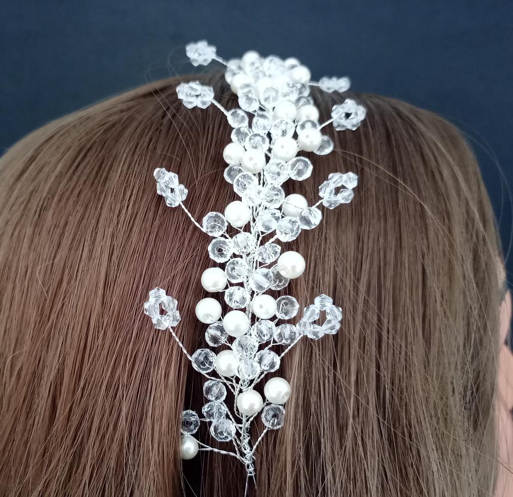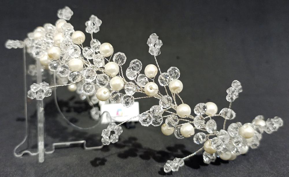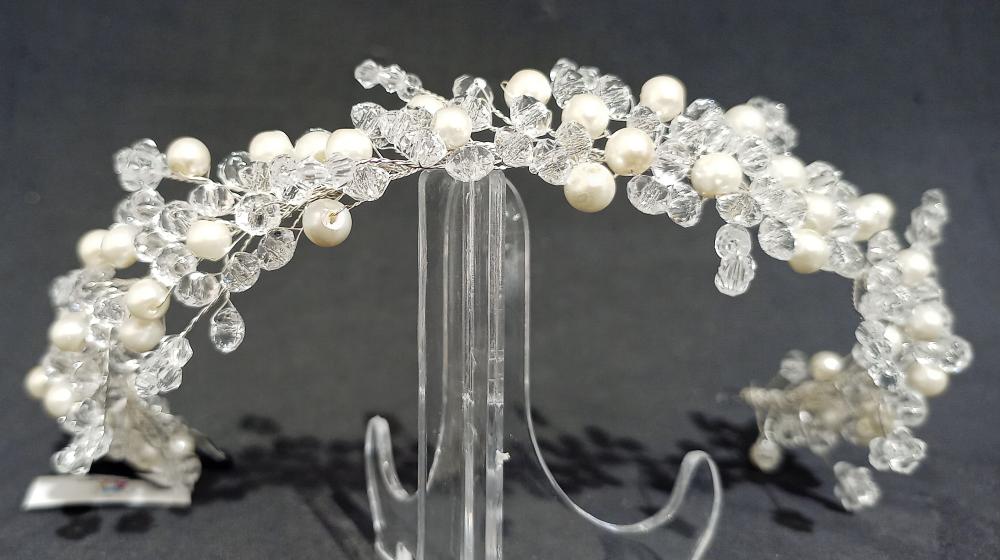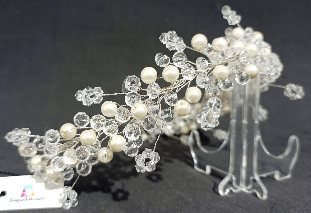 Kristal Taşlarla Şekillendirilmiş İnci Detaylı Gelin Tacı