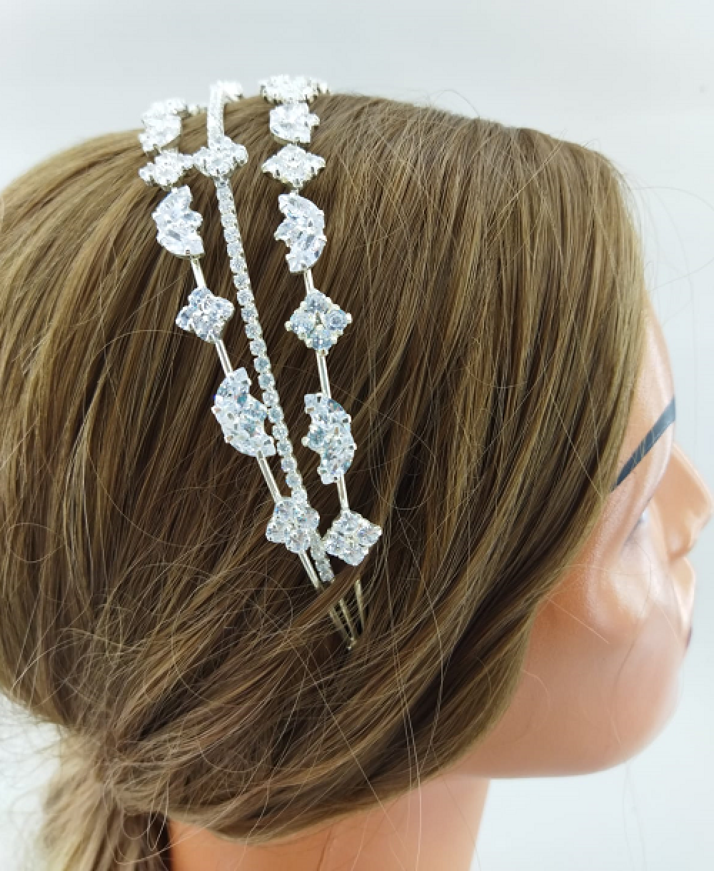 Zirkon Taşlarla Şekillendirilmiş Zarif Gelin Tacı
