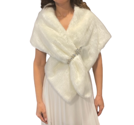Kristal Taşlı Broşa Sahip Gelin Etol Kürk Bolero