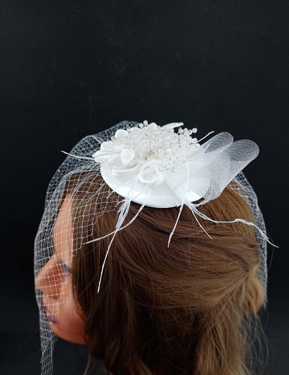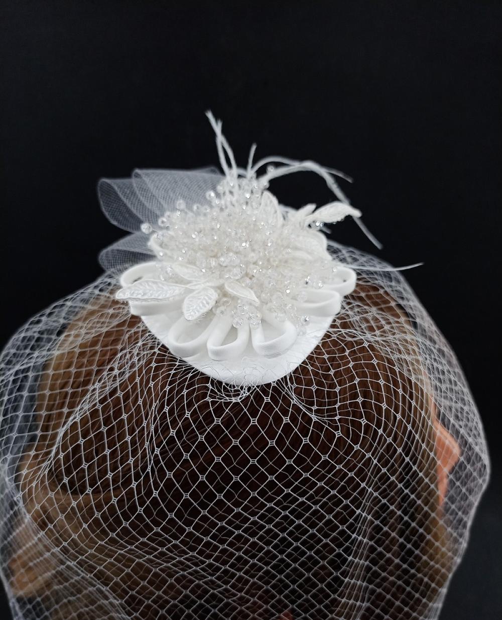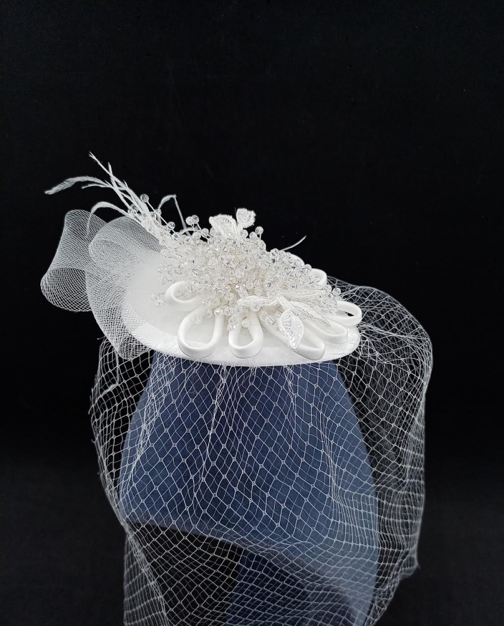 Kristal Ve Dantel Detaylı Beyaz Vualet Şapka Nikah Kepi