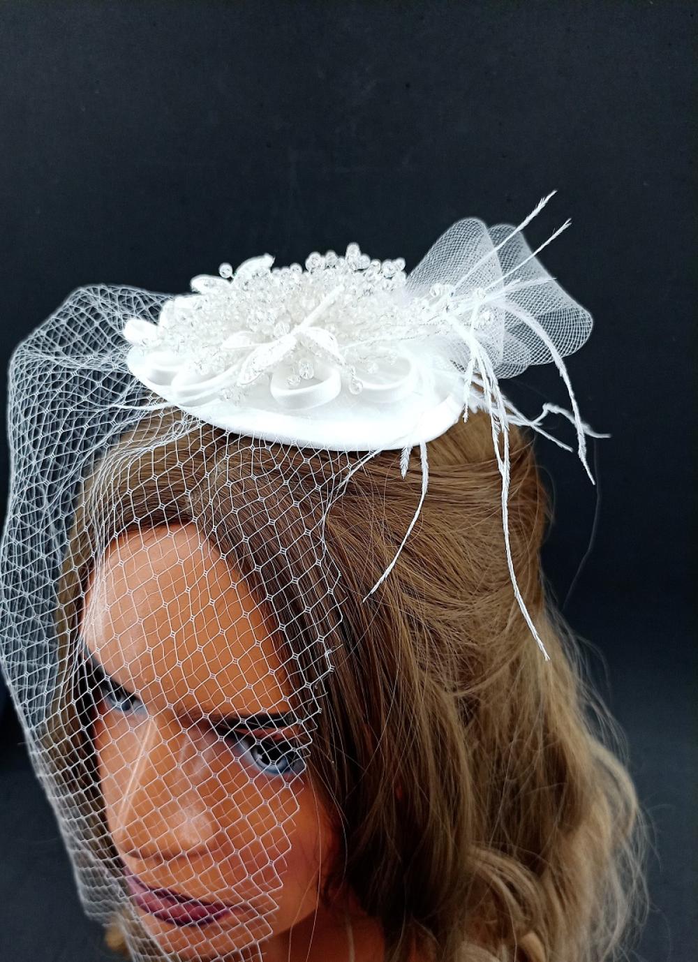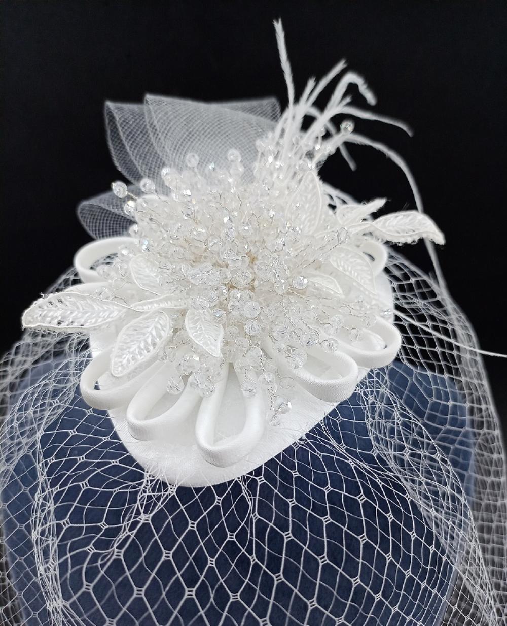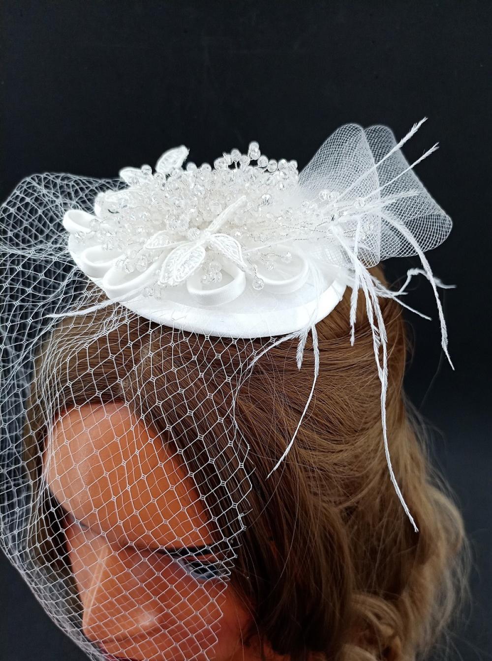Kristal Ve Dantel Detaylı Beyaz Vualet Şapka Nikah Kepi