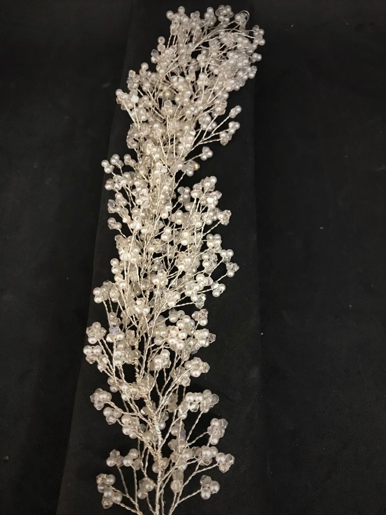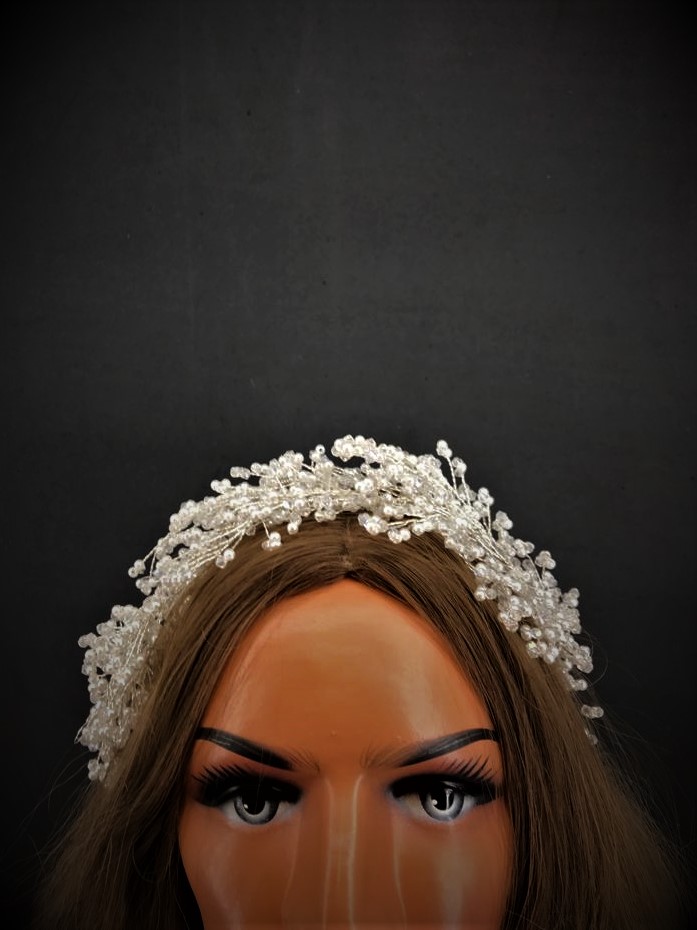 Kristal Ve İncilerden Oluşan Kırık Beyaz Helen Model Gelin Tacı