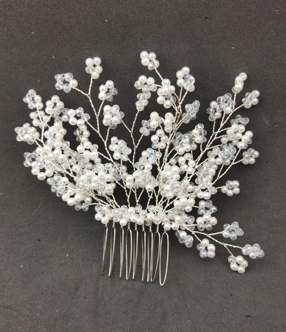 Kristal Ve İncilerle Şekillendirilmiş Gelin Tokası