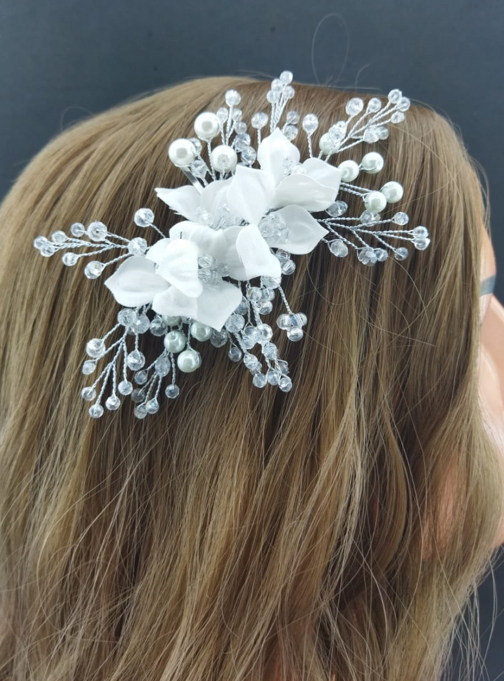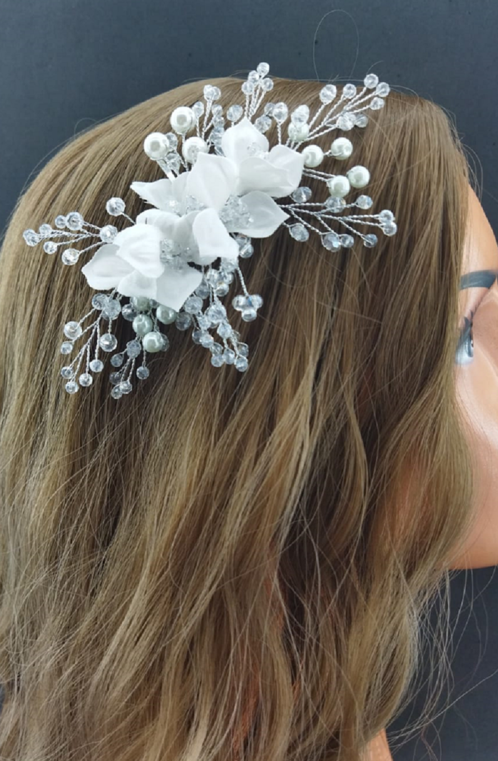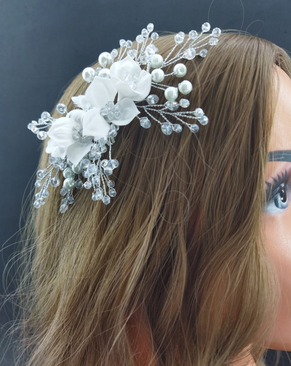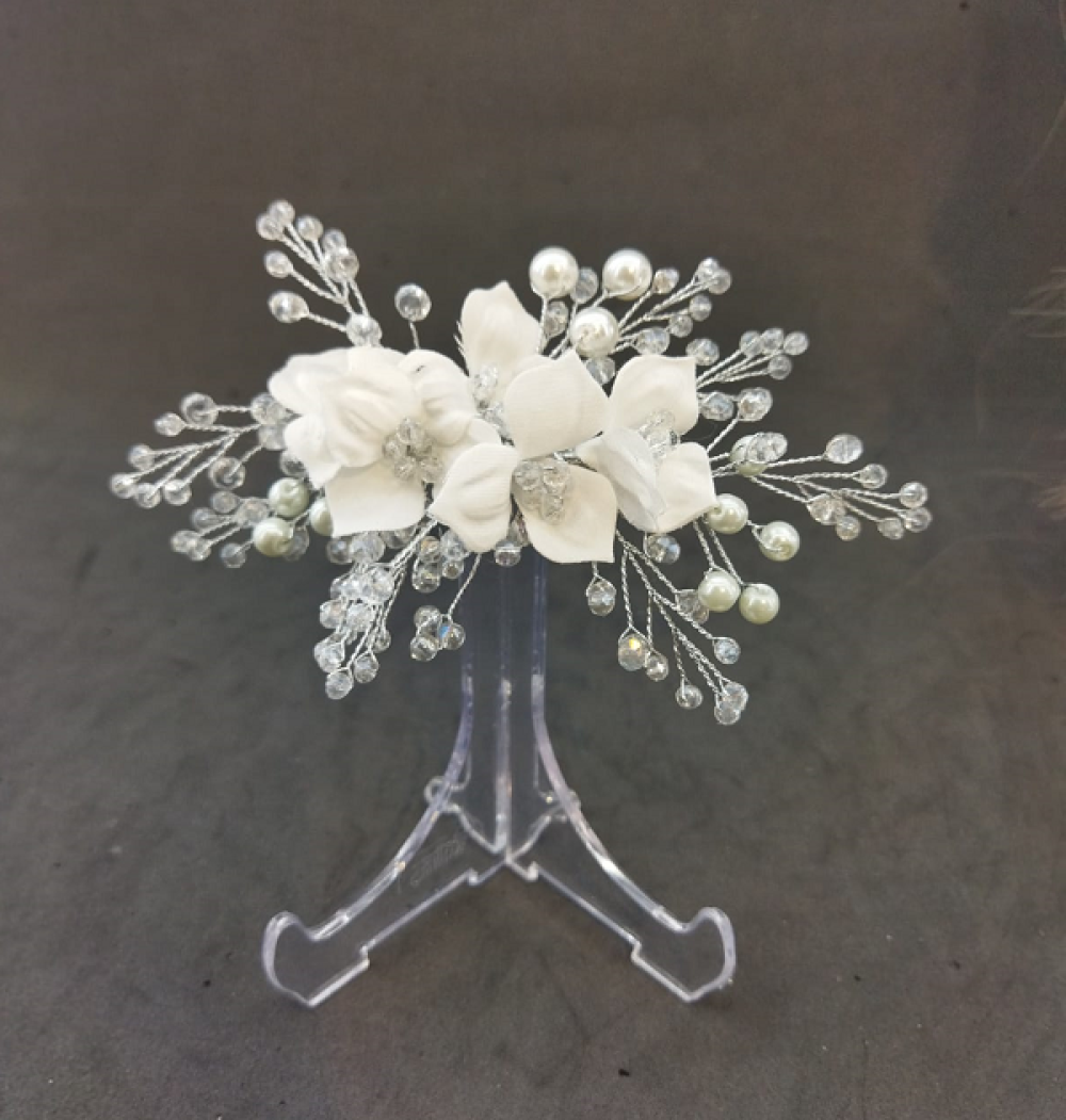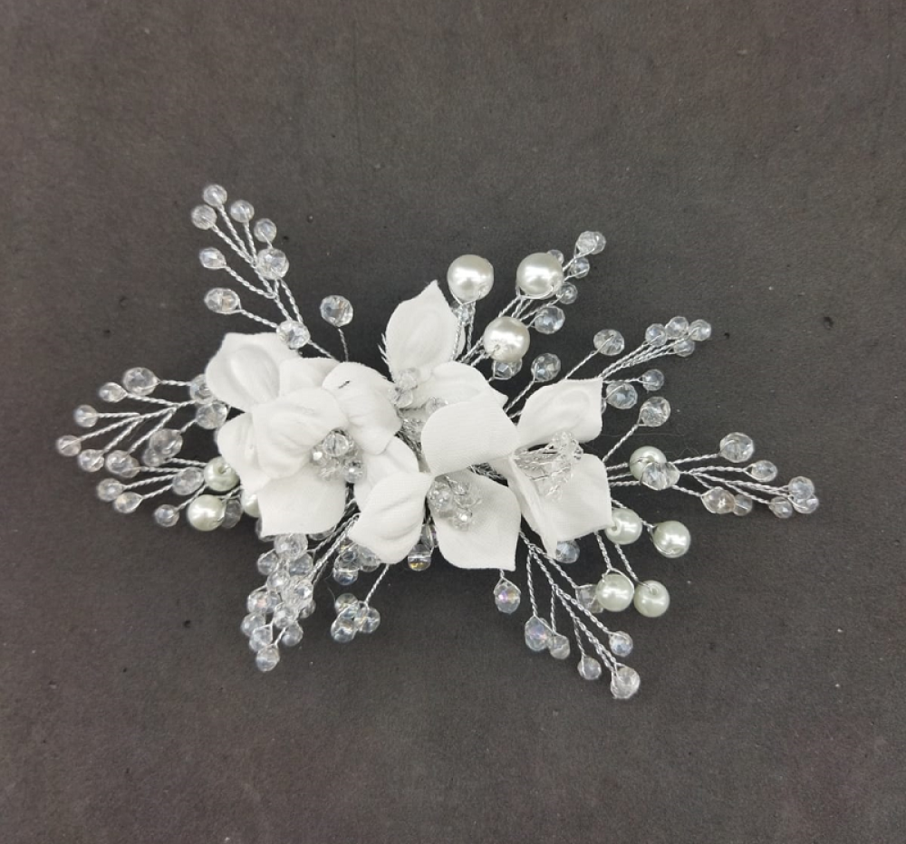 Kristal Ve İncilerle Süslenmiş Üç Taç Yapraklı Gelin Tokası