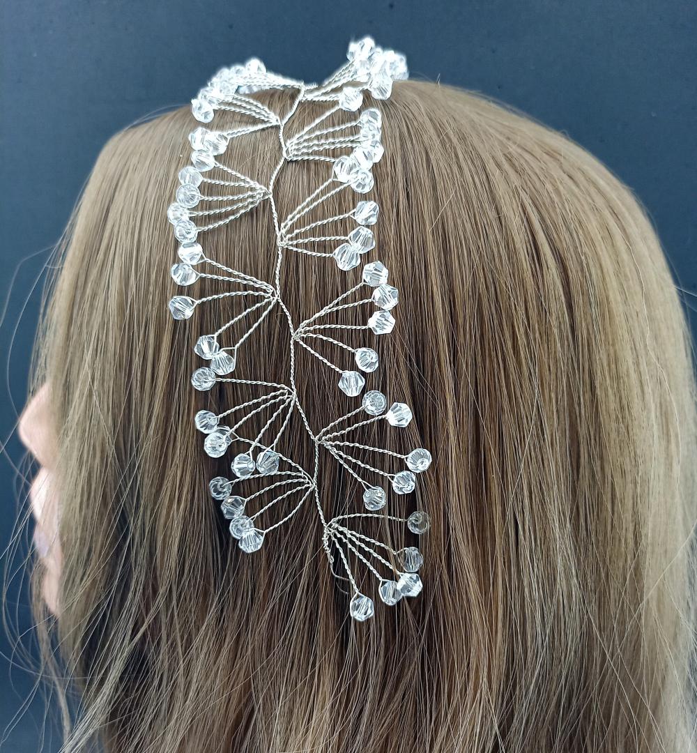 Kristaller Ve Gümüş Rengi Detaylarına Sahip Gelin Tacı