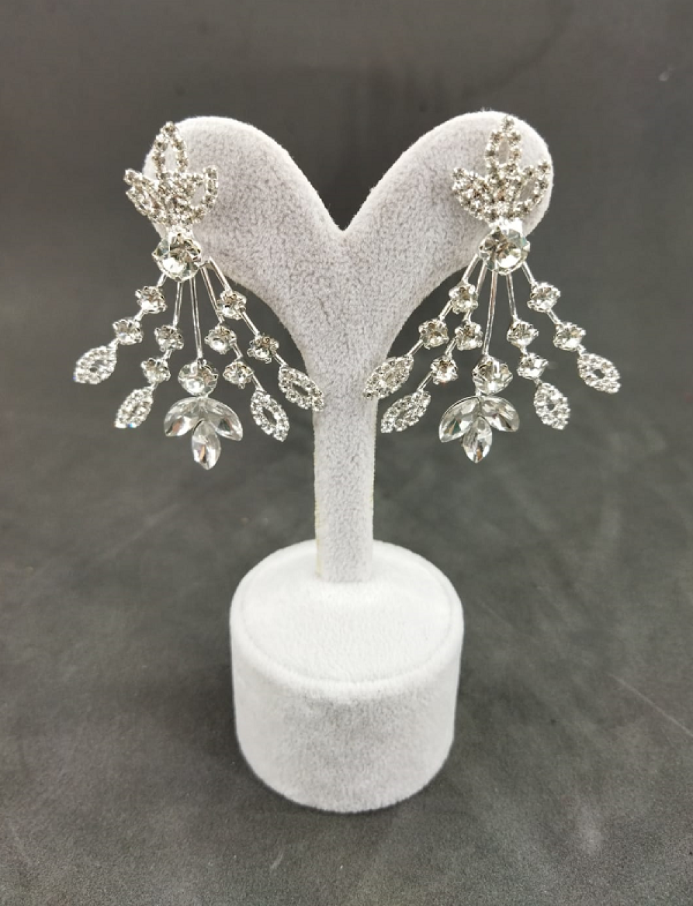 Kristallerden Oluşmuş Gümüş Renkli Şık Küpe
