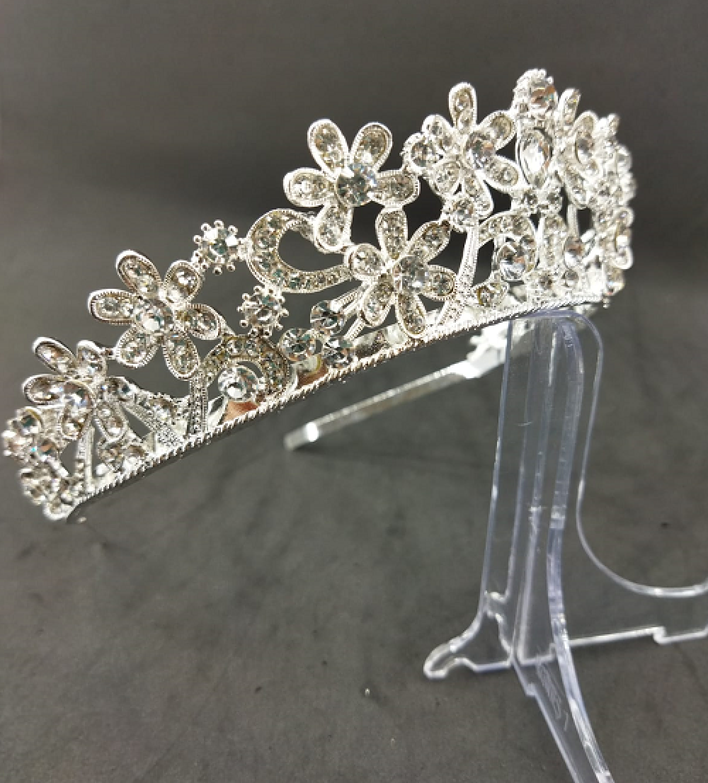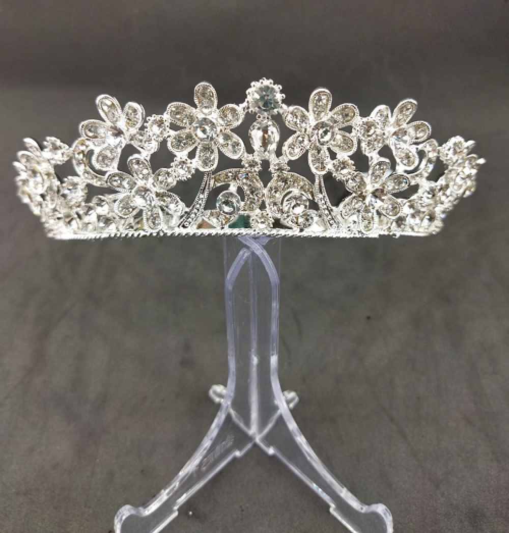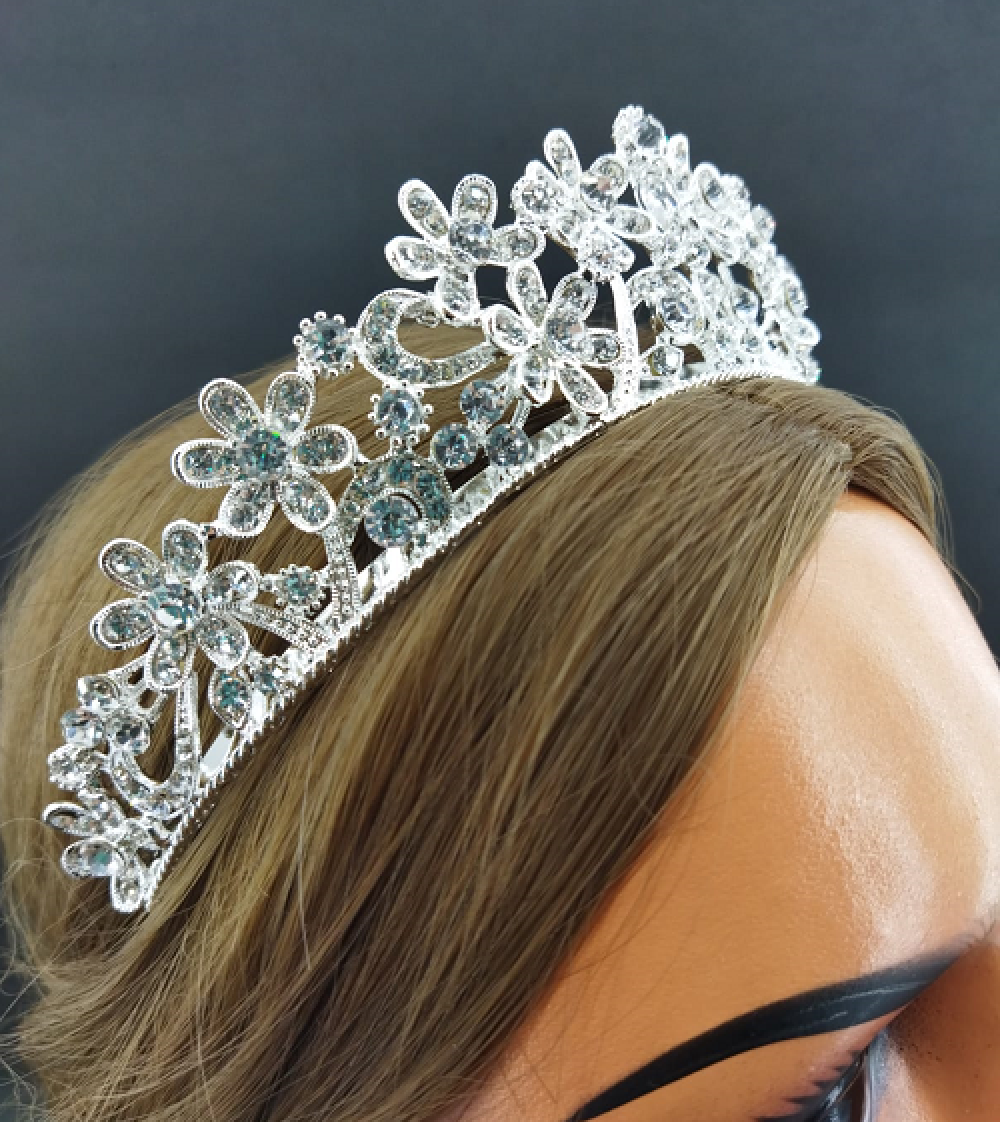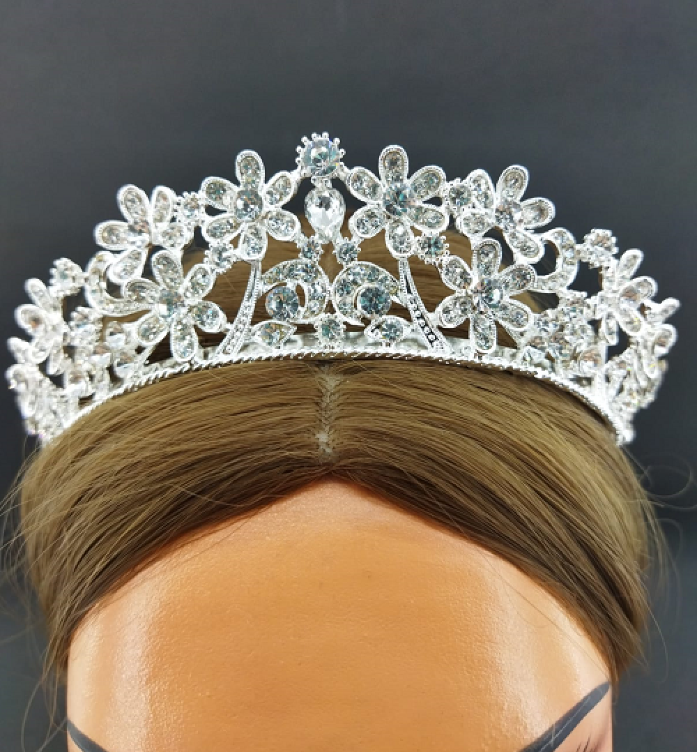 Kristallerle Oluşturulmuş Çiçek Desenleri Olan Gelin Tacı