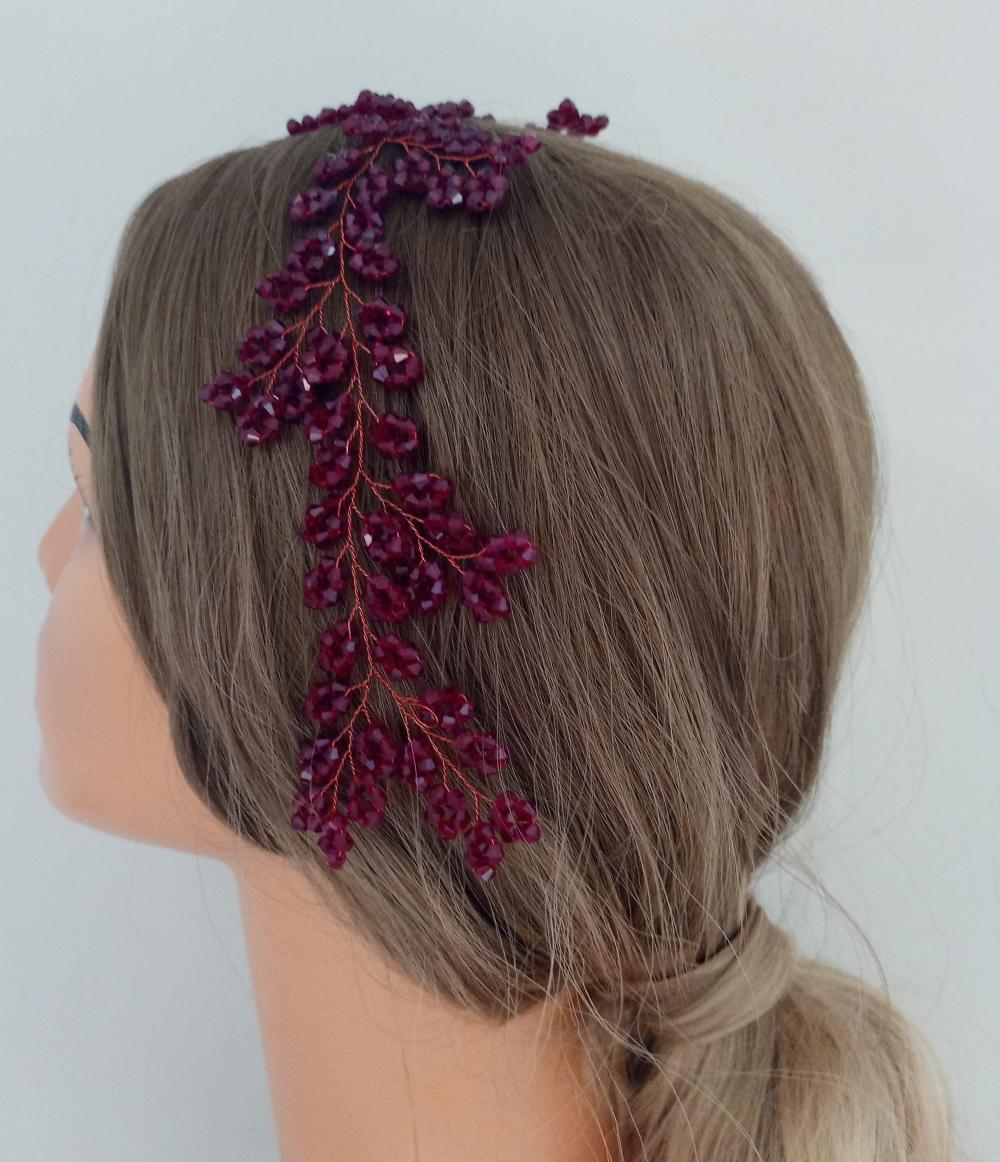 Kristallerle Oluşturulmuş Koyu Kırmızı Kına Tacı