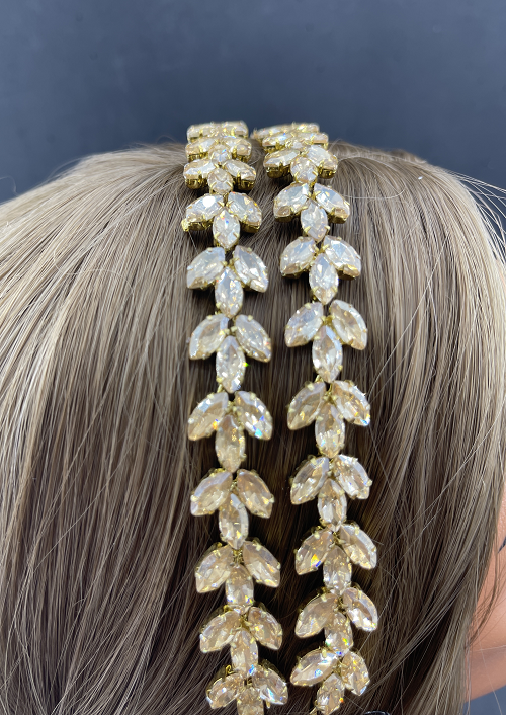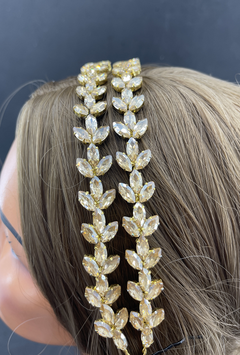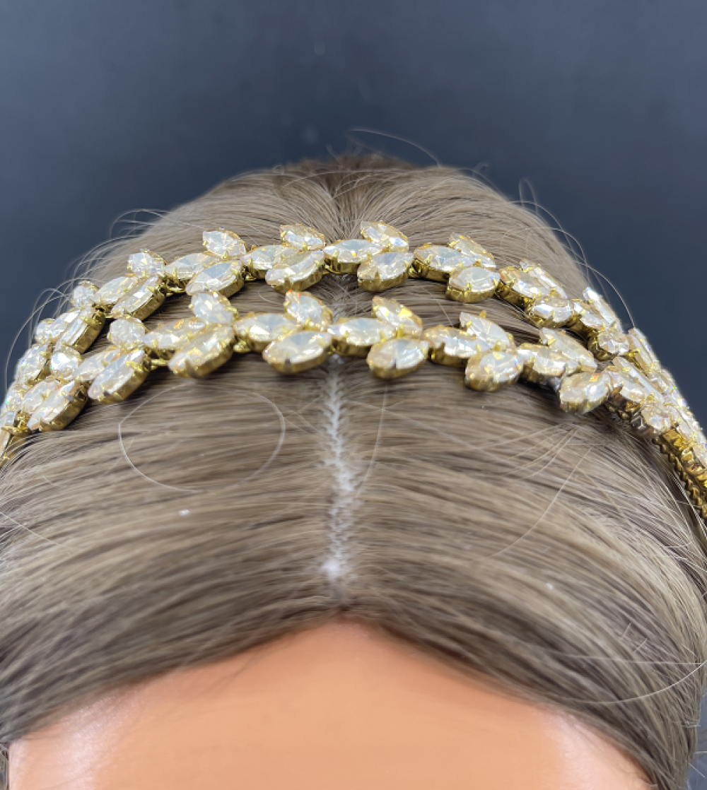 Kristallerle Süslenmiş Gold Detaylı Gelin Tacı