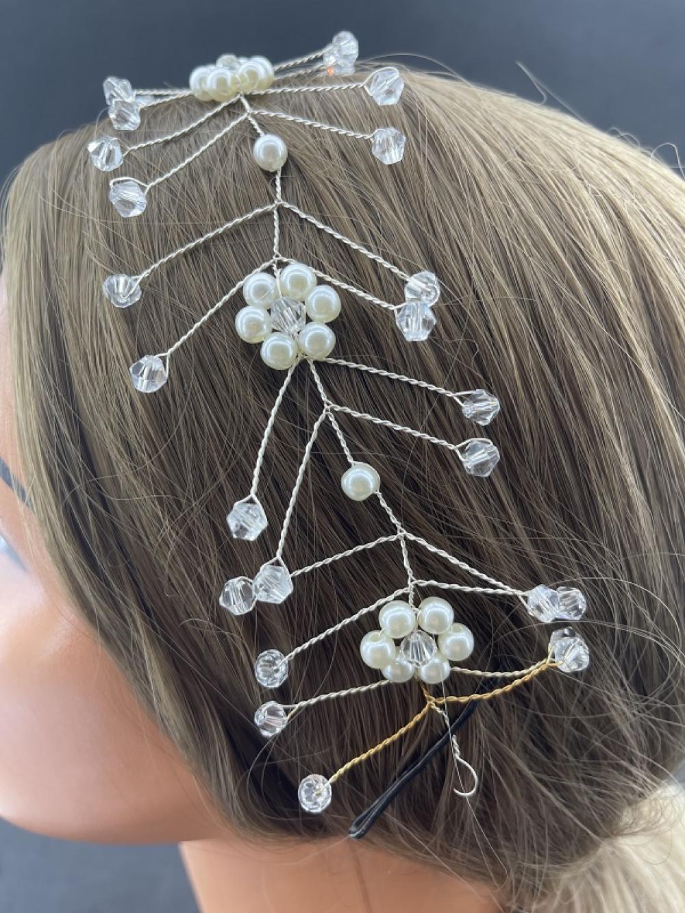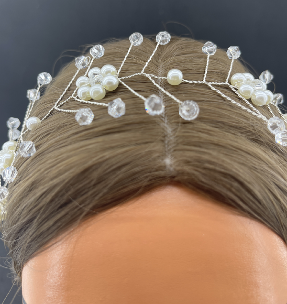İnci Ve Kristallerle Süslenmiş Zarif Gelin Tacı