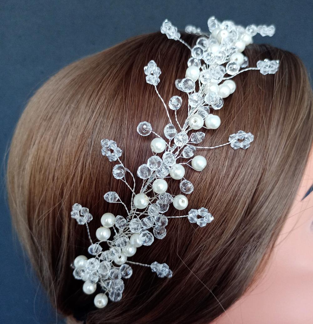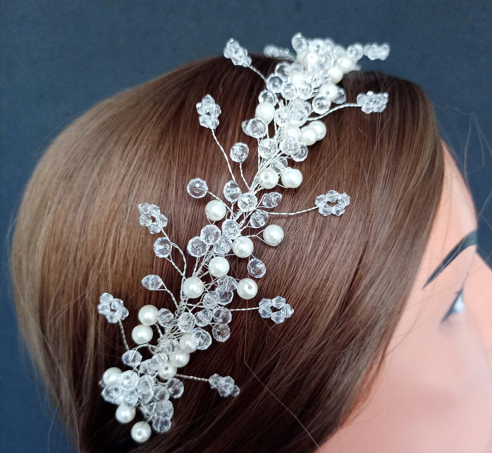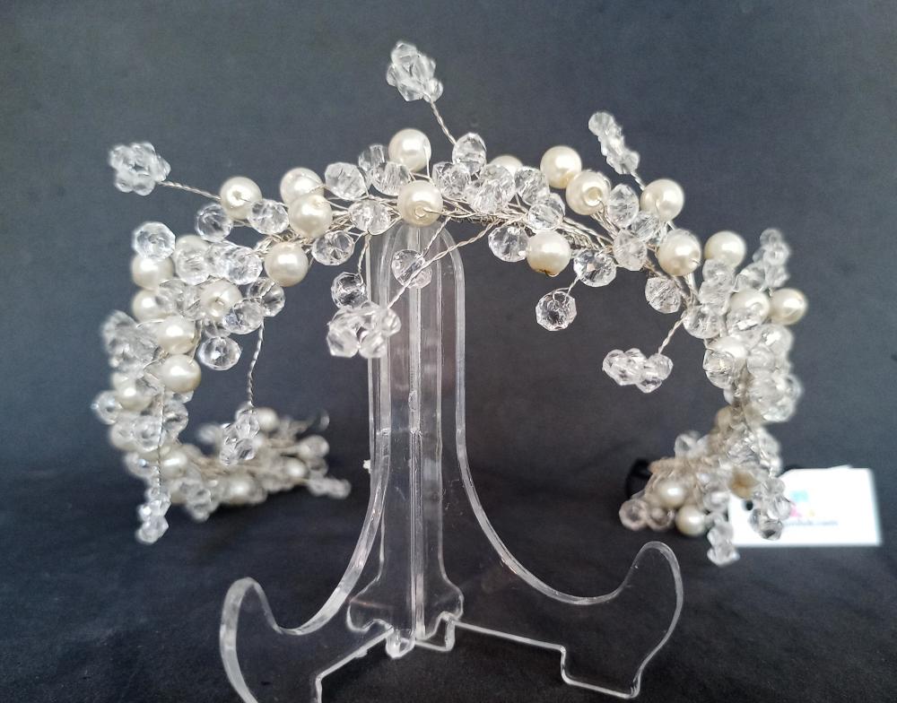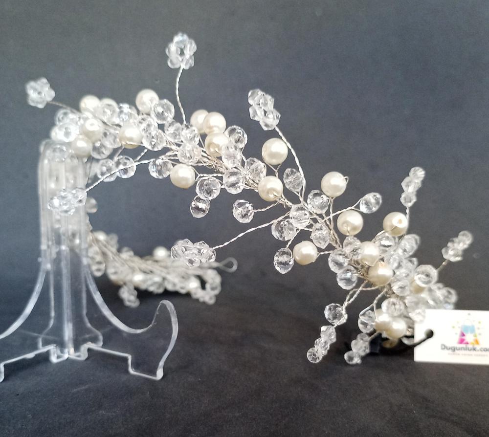 Kristallerle Süslenmiş İnci Detayları Olan Gelin Tacı