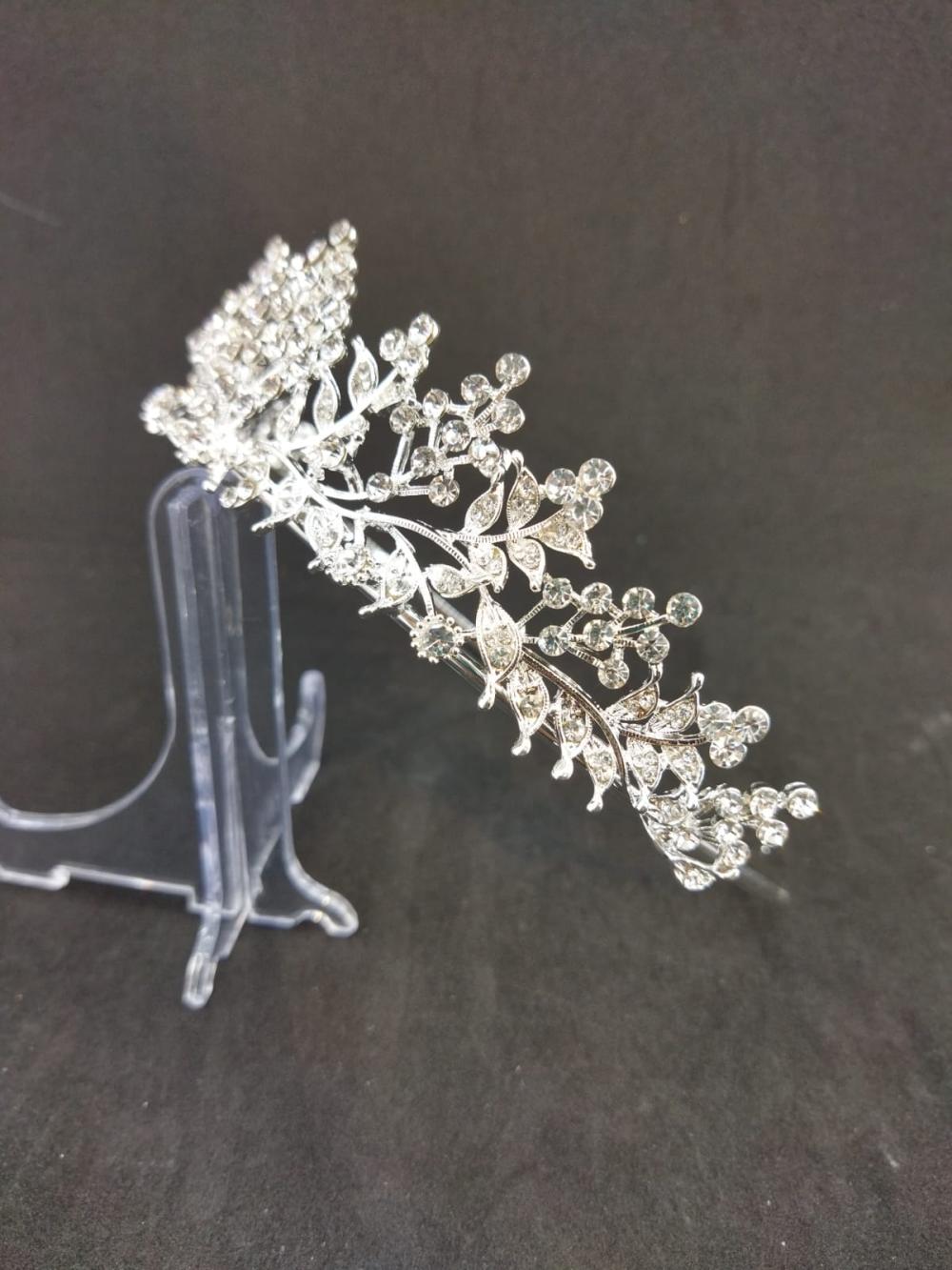 Kristallerle Süslenmiş Minik Dal Detayları Olan Gelin Tacı