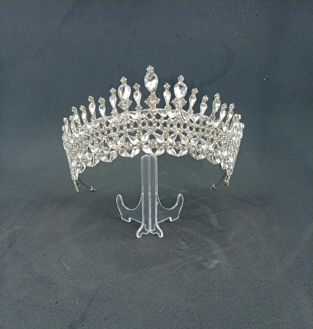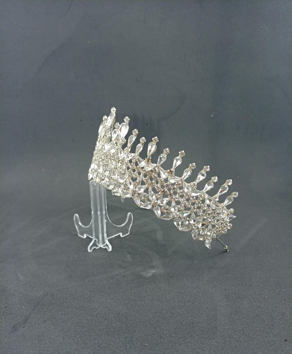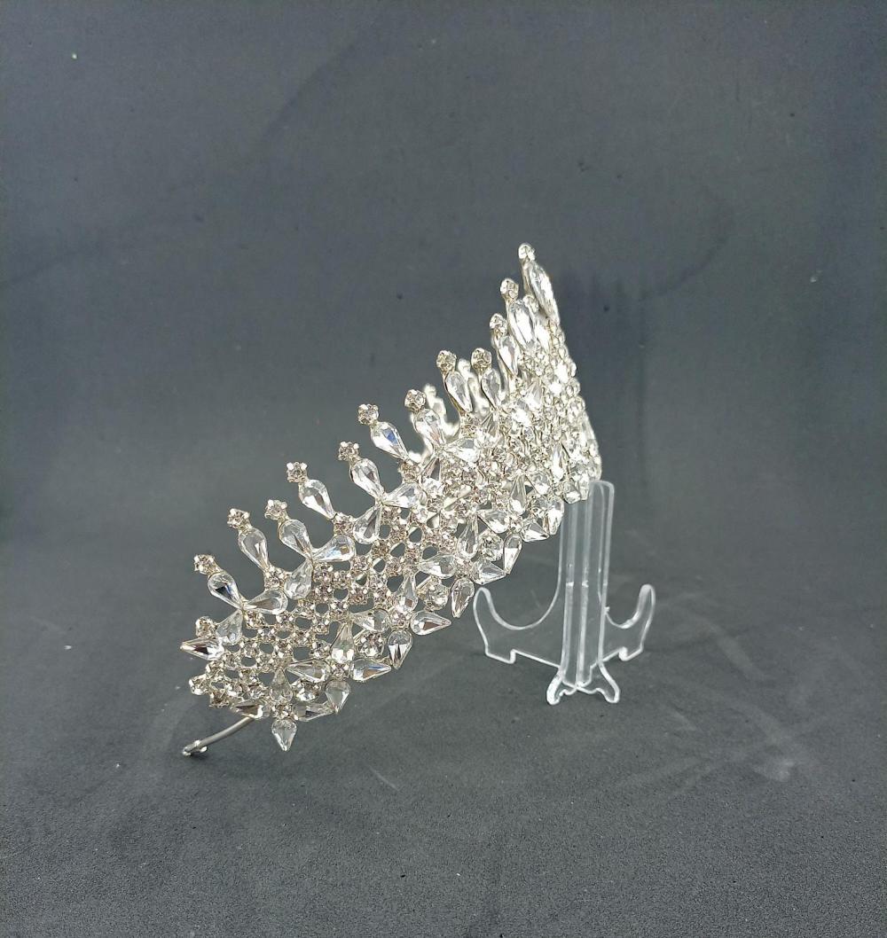 Kristallerle Süslenmiş Yüksek Gelin Tacı