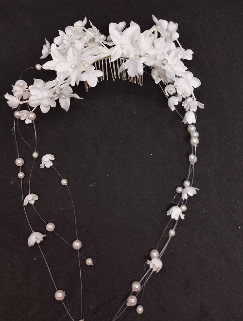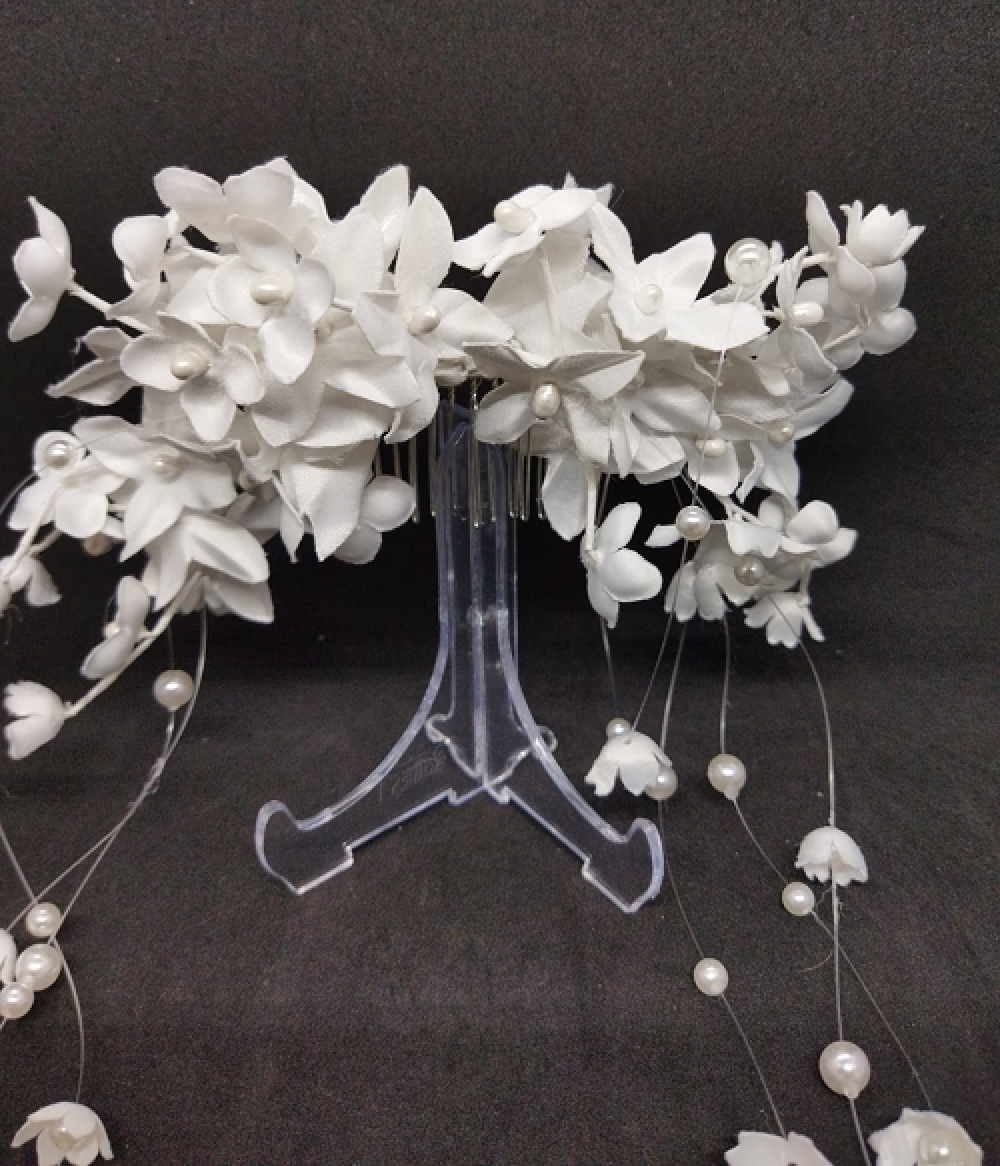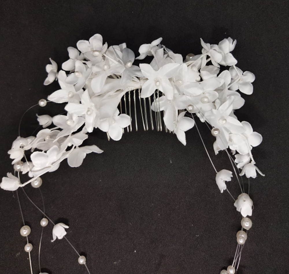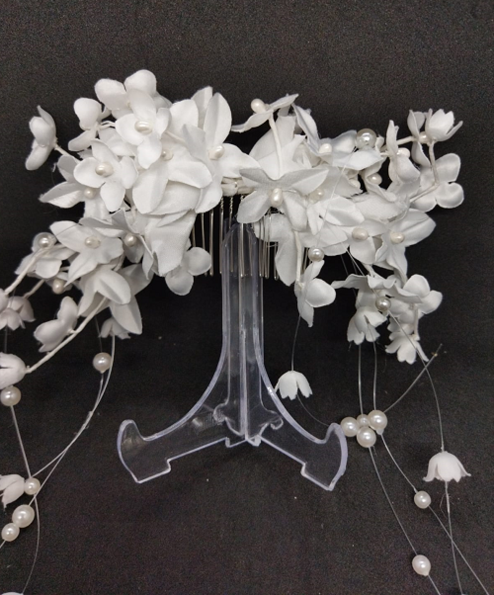 Küçük Beyaz Çiçeklerle Süslenmiş İnci Detaylı Gelin Tokası