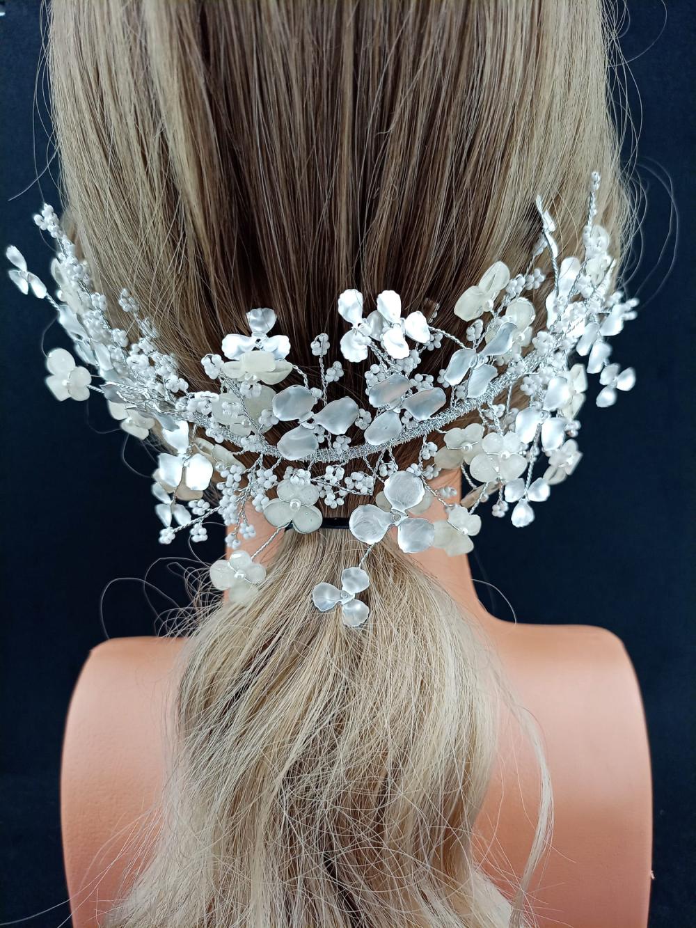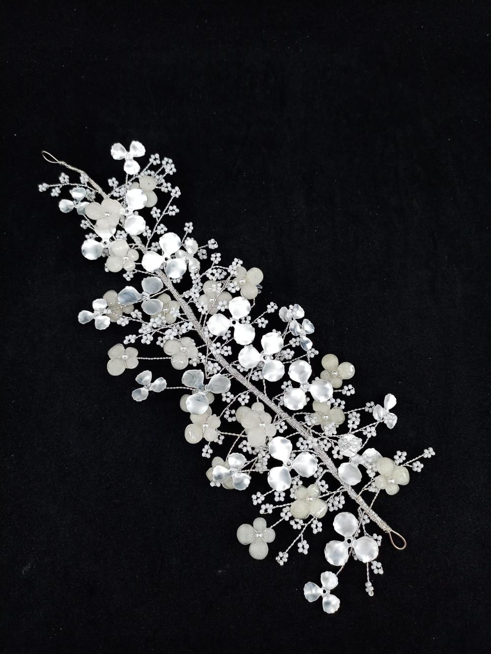 Küçük Boncuklarla Süslenmiş Sedef Detayı Olan Gelin Tacı