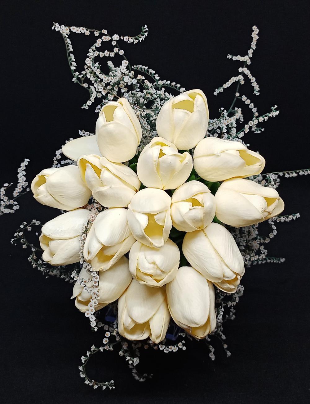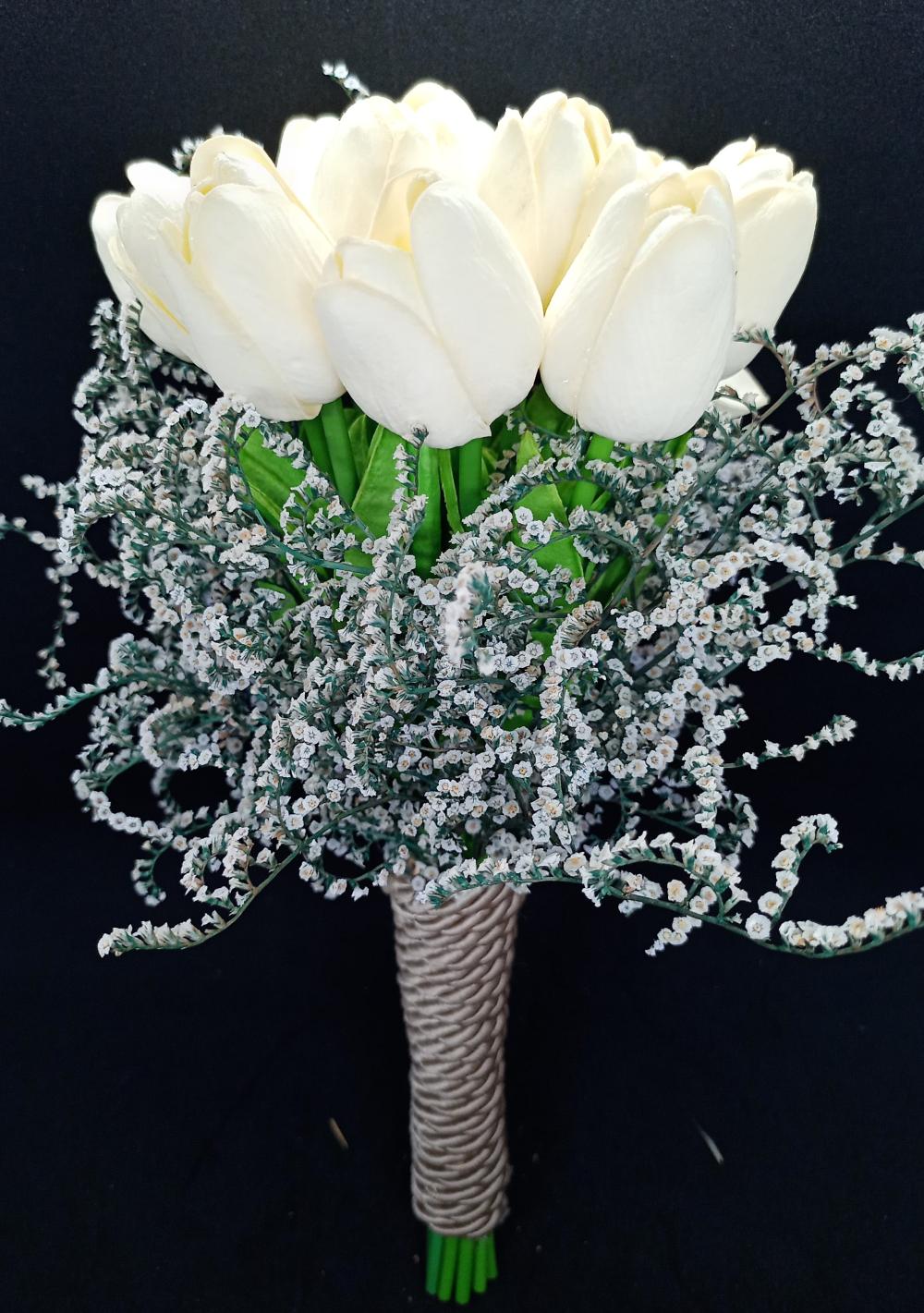 Küçük Çiçek Detayları Olan Beyaz Lale Gelin Buketi