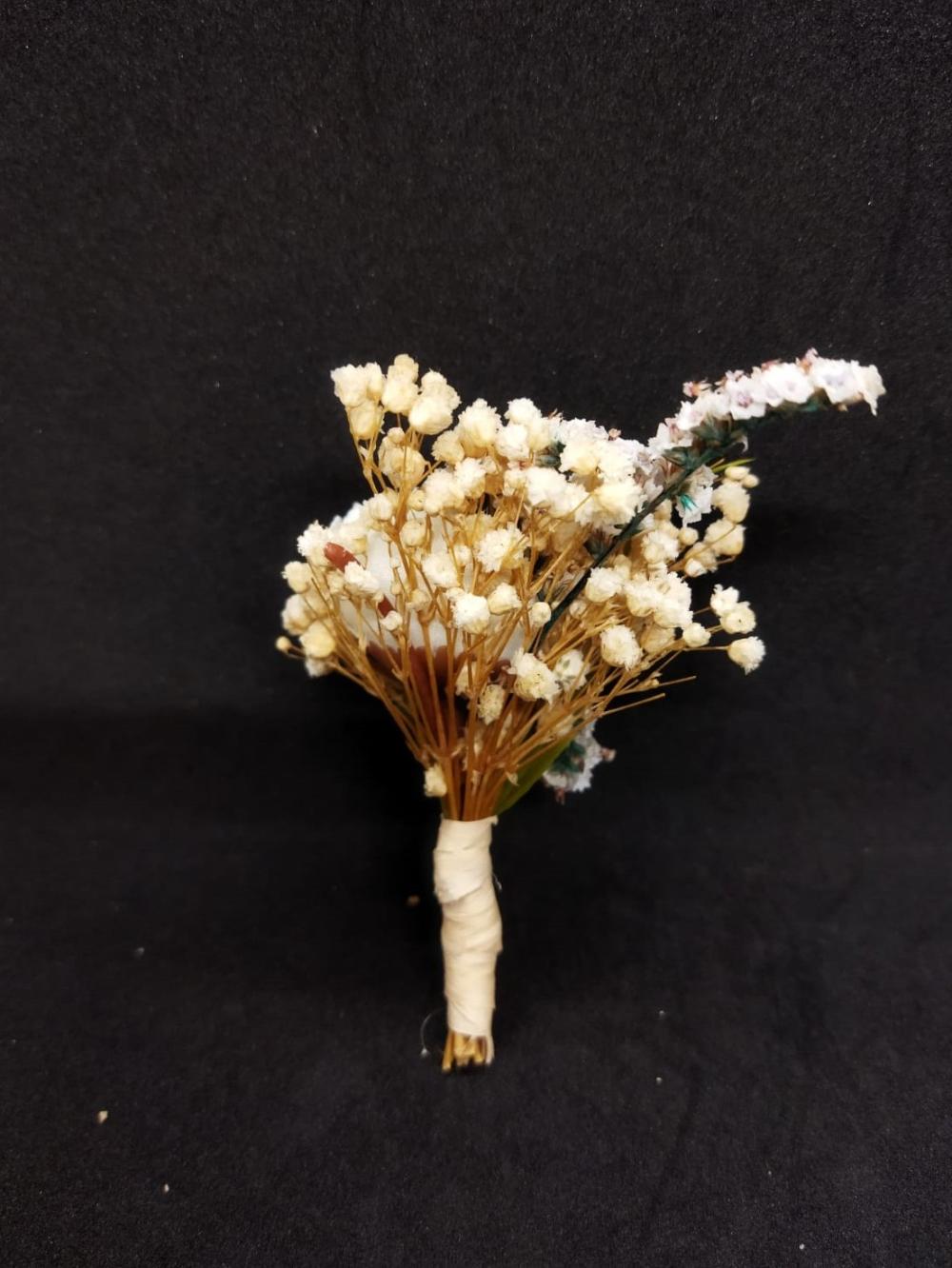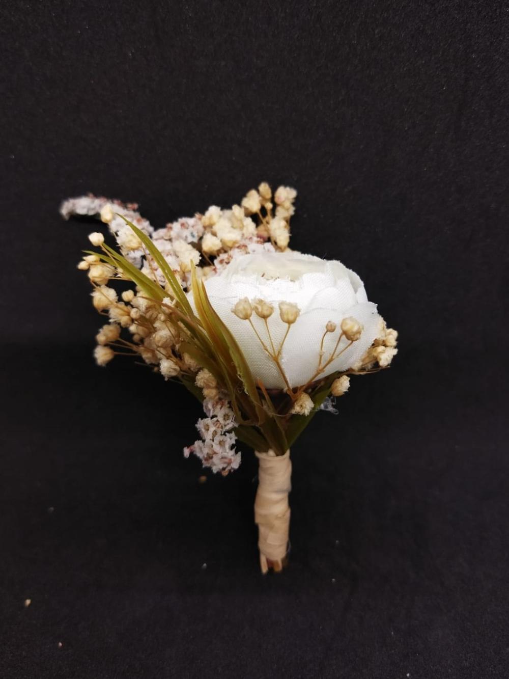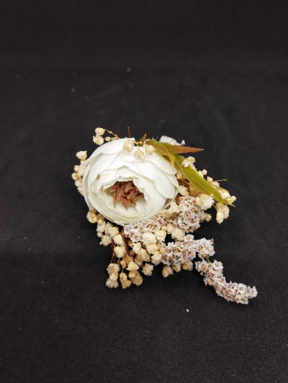 Küçük Çiçeklerle Süslenmiş Beyaz Gül Damat Yaka Çiçeği