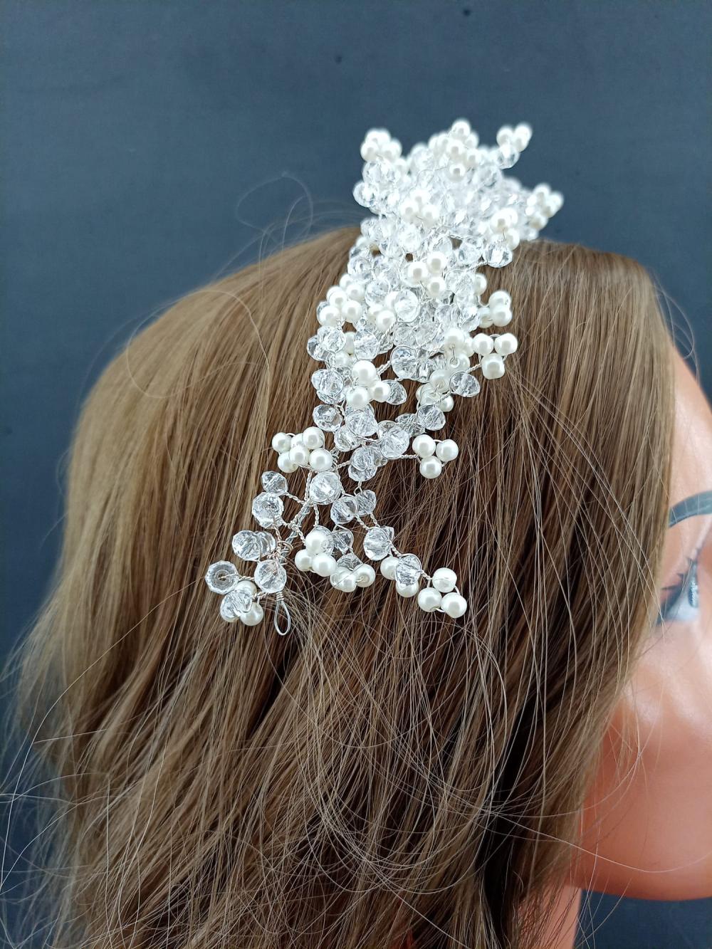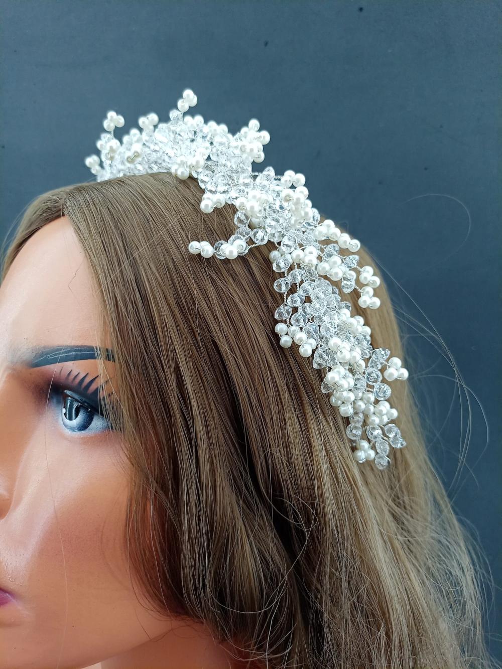 Küçük İnci Ve Kristallerle Süslenmiş Gelin Tacı